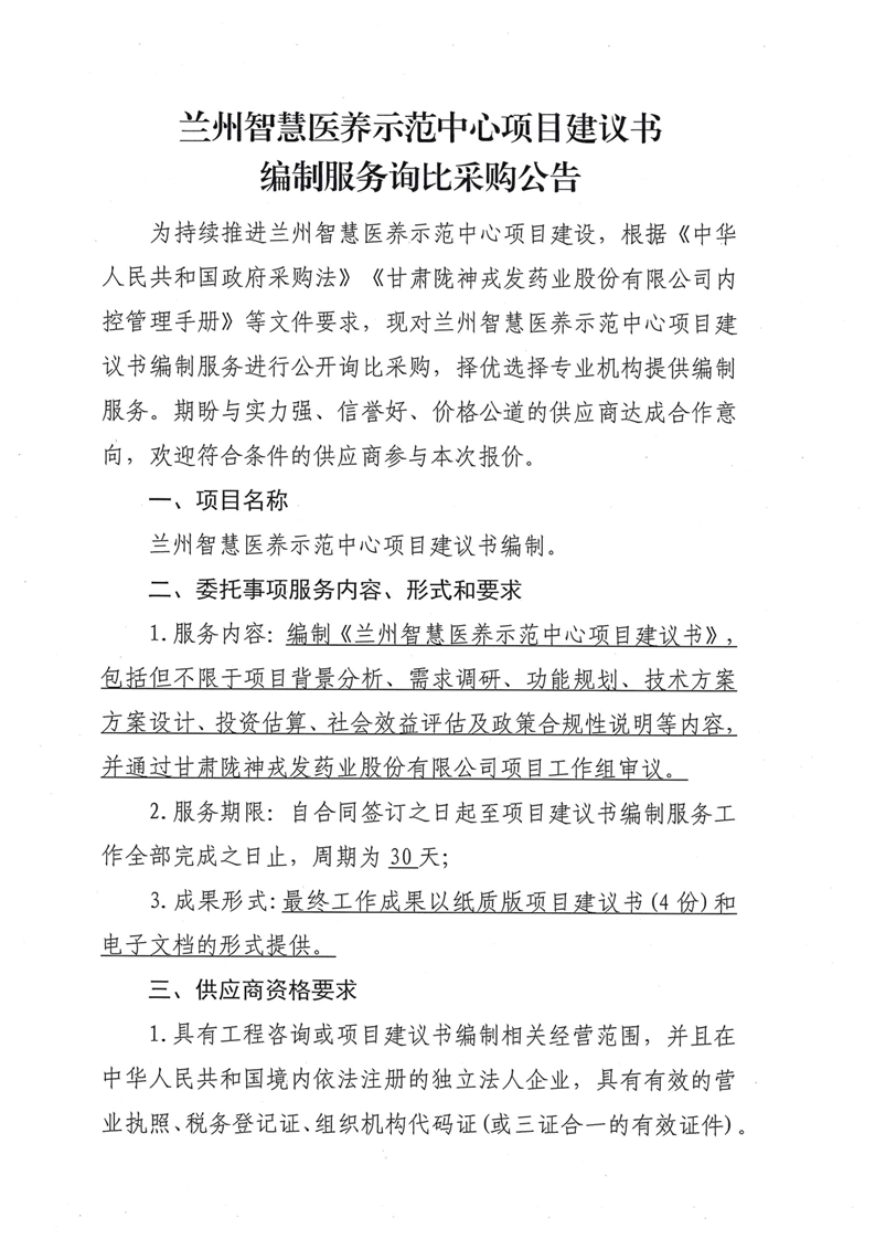 兰州智慧医养示范中心项目建议书编制服务询比采购公告