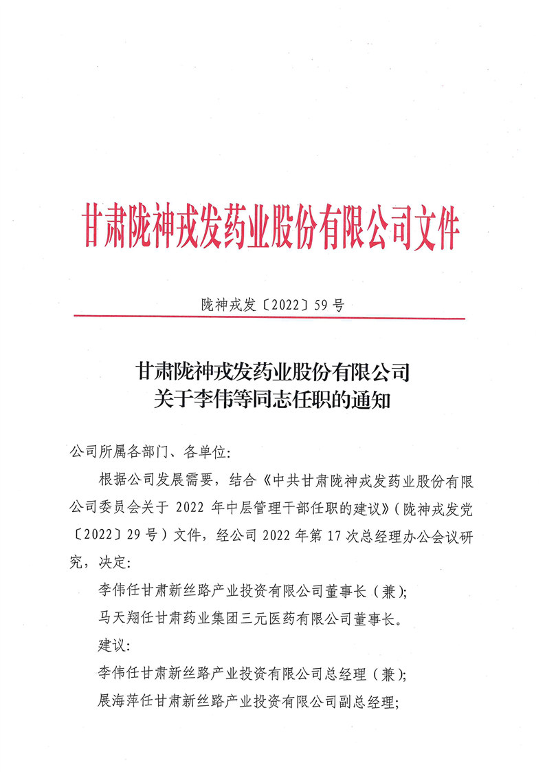 关于李伟等同志任职的通知