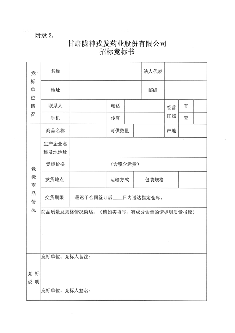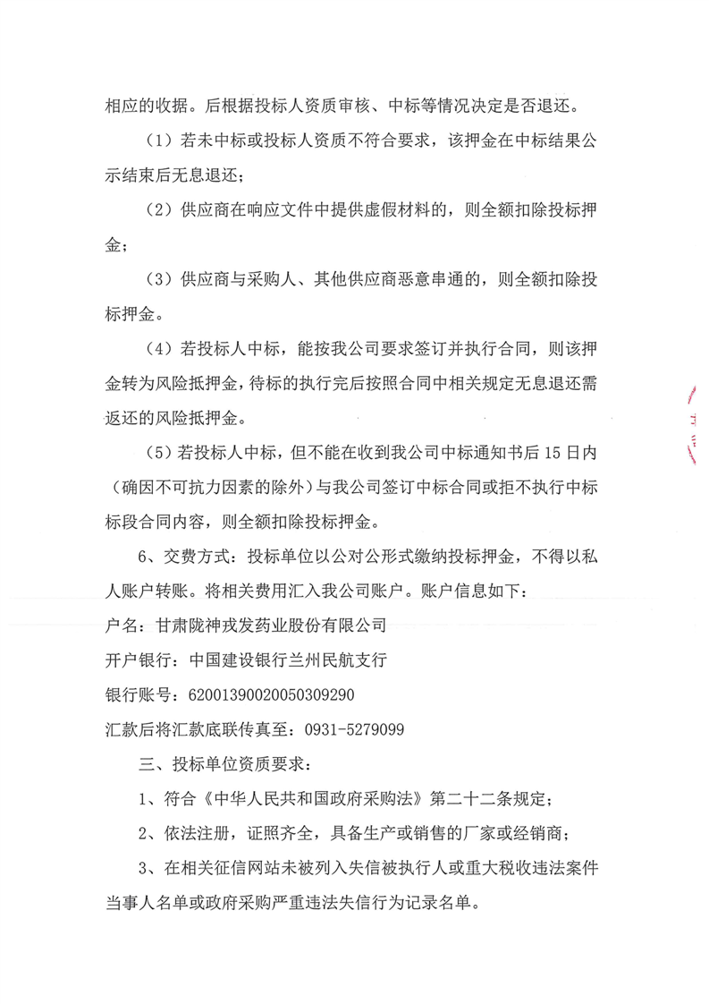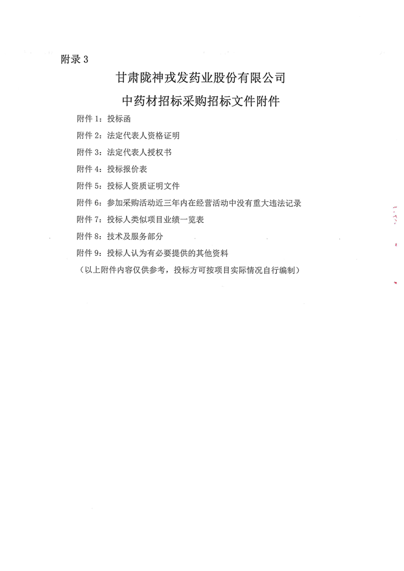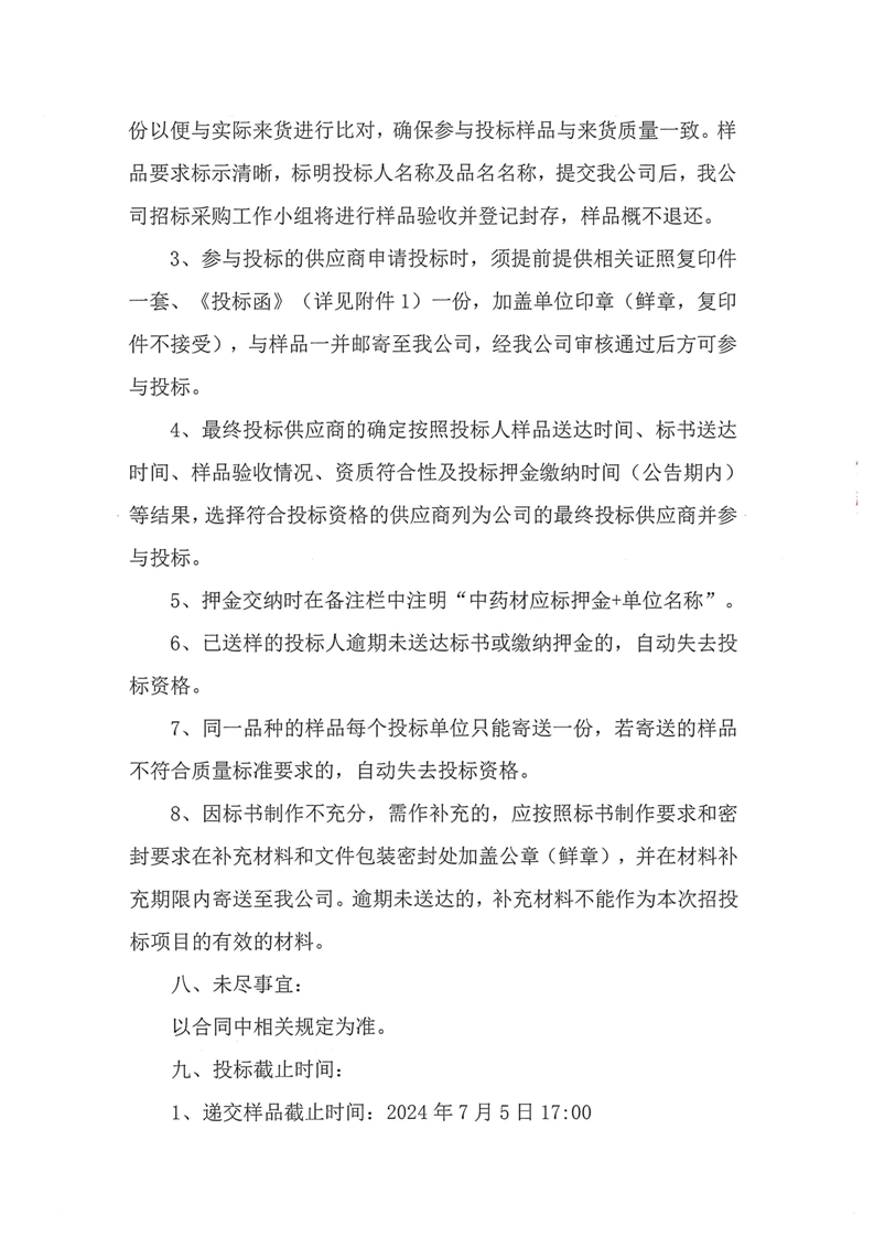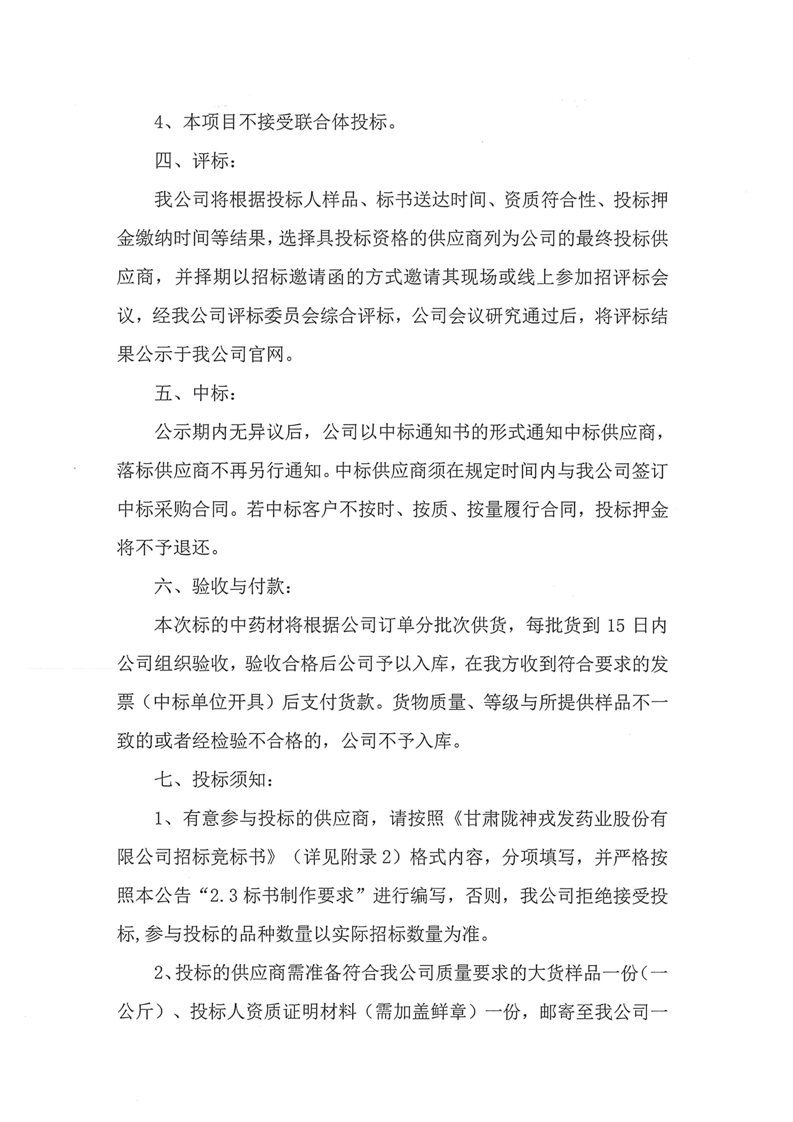 甘肃陇神戎发药业股份有限公司2024年6月中药材采购公告