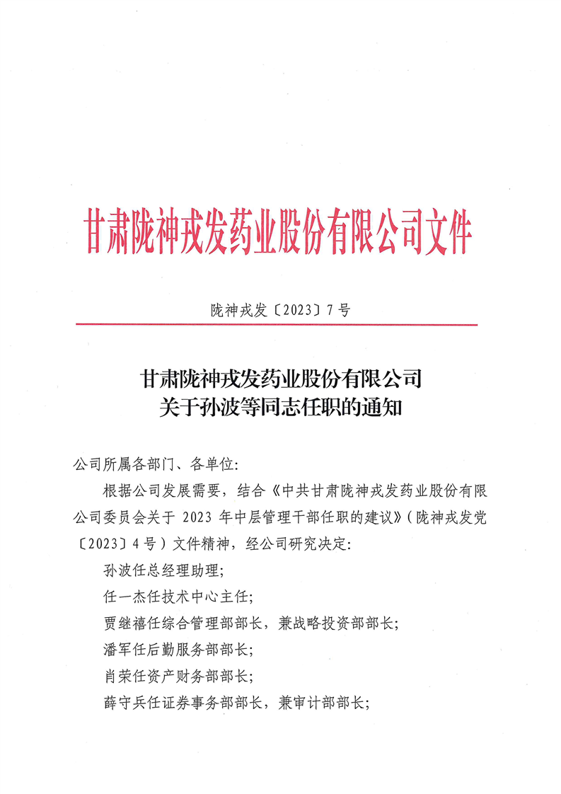 关于孙波等同志任职的通知
