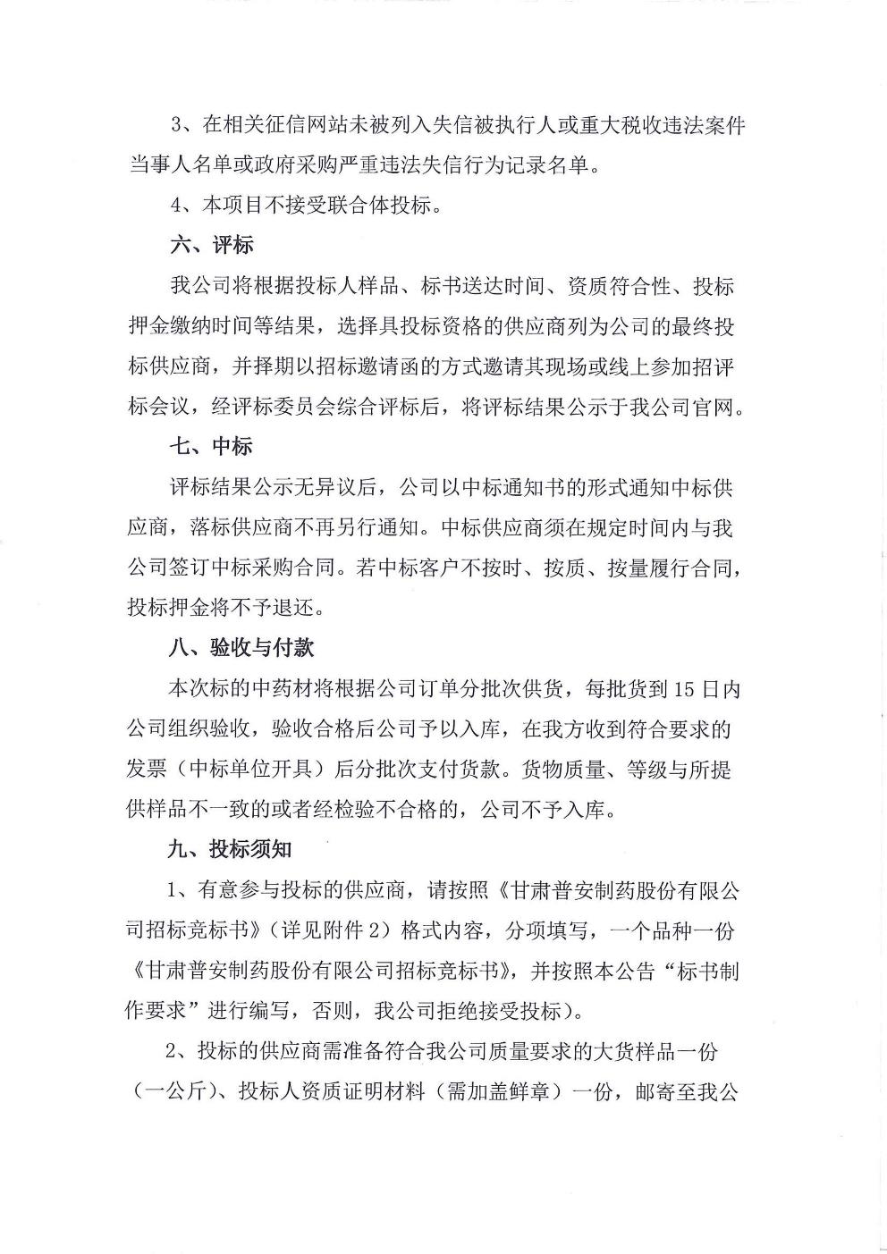 甘肃普安制药股份有限公司 2023 年-2024年3000 万盒宣肺止嗽合剂原料薄荷、鱼腥草采购竞争性磋商公告
