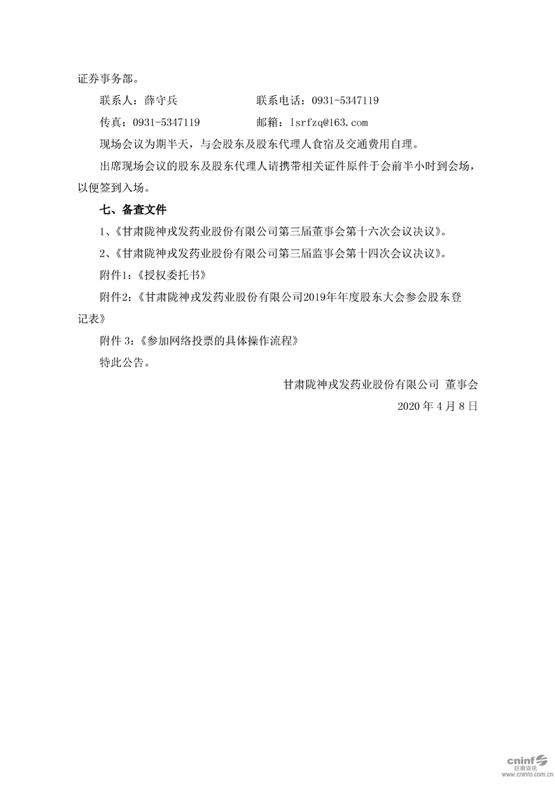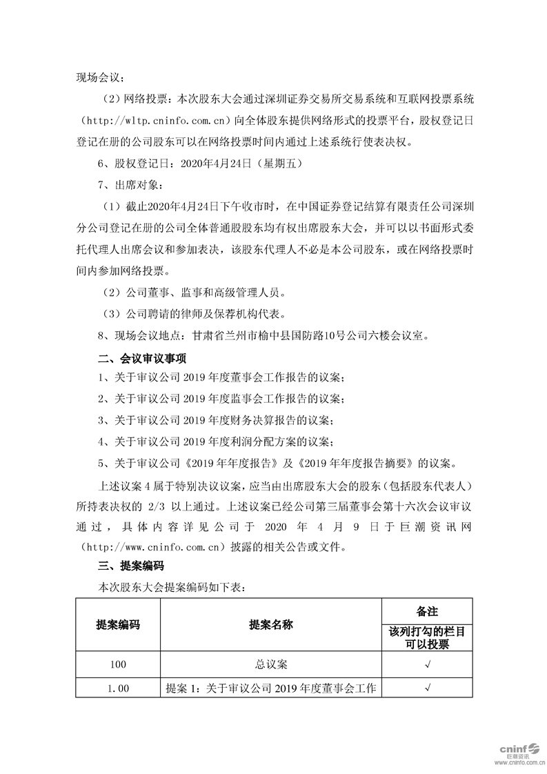 关于召开2019年年度股东大会的通知