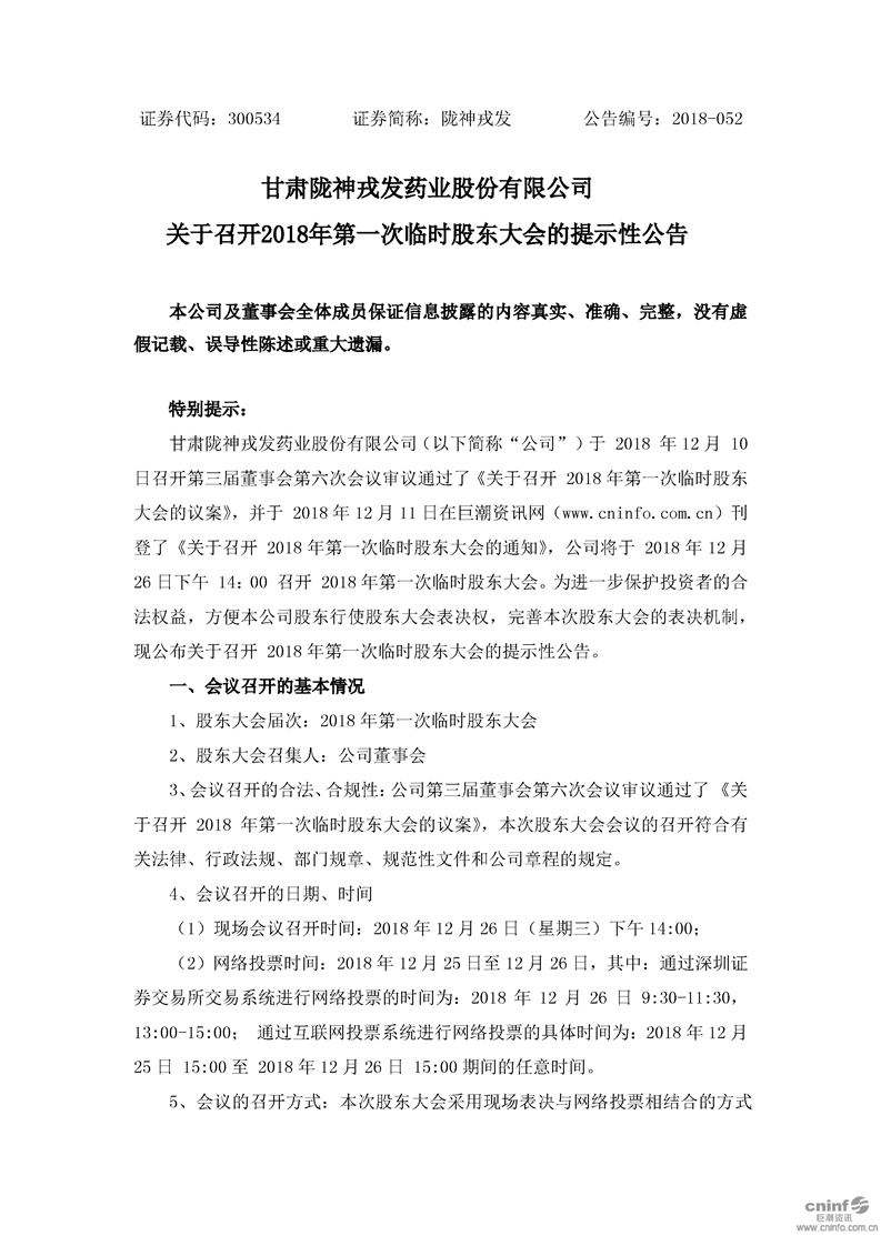 关于召开2018年第一次临时股东大会的提示性公告