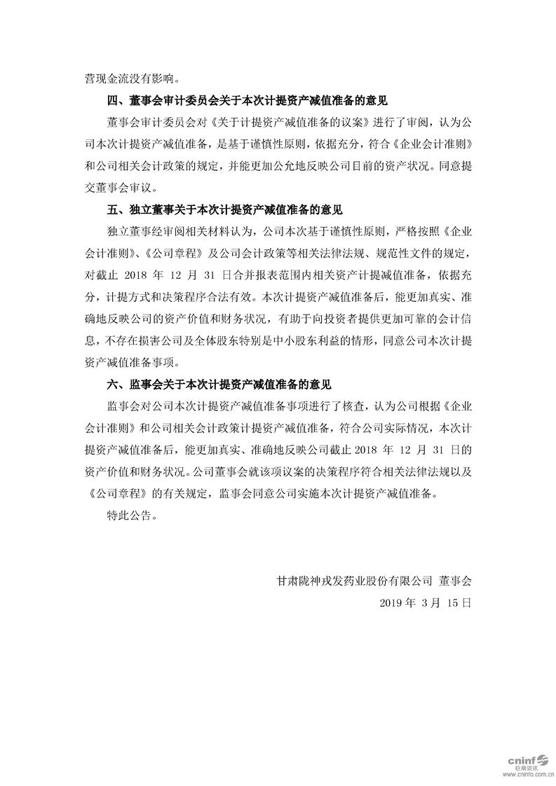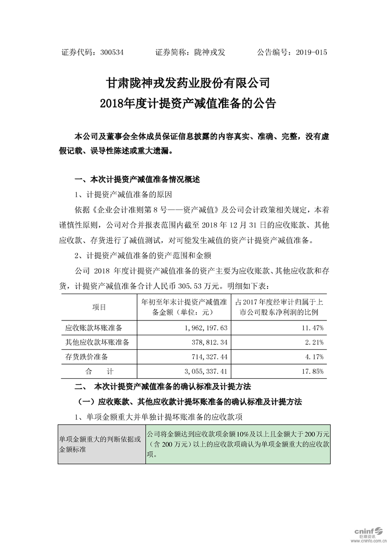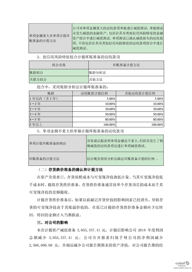 2018年度计提资产减值准备的公告