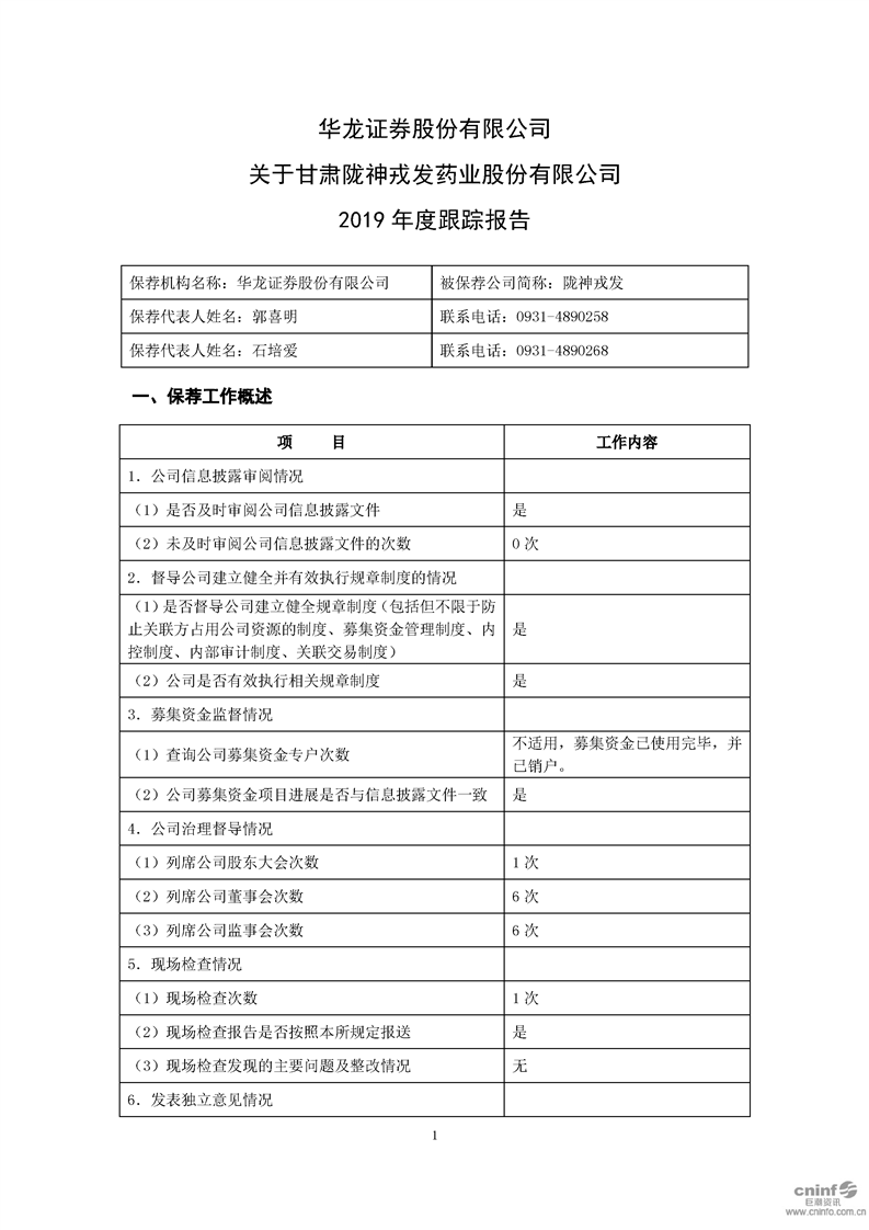 华龙证券股份有限公司关于公司2019年度跟踪报告