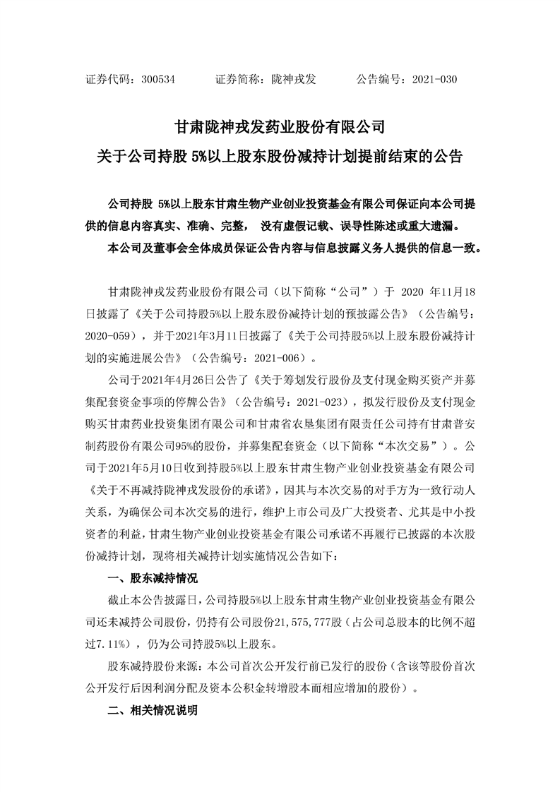 关于公司持股5%以上股东股份减持计划提前结束的公告