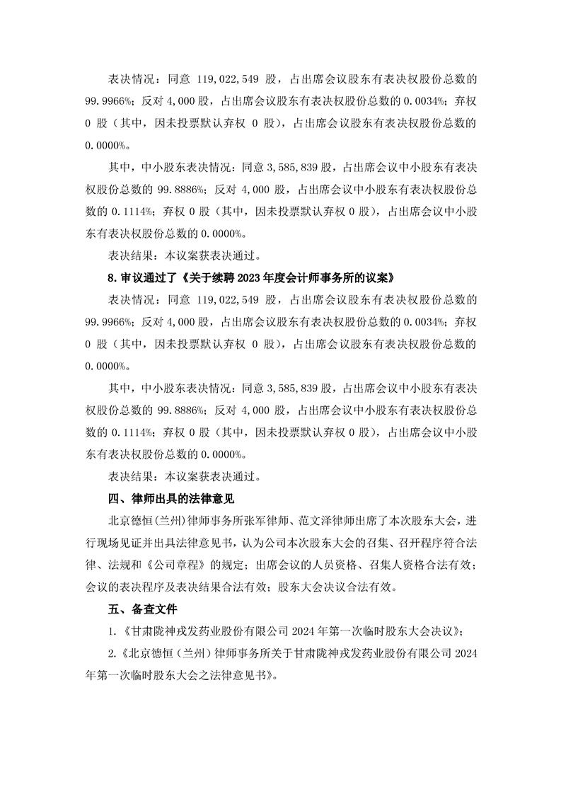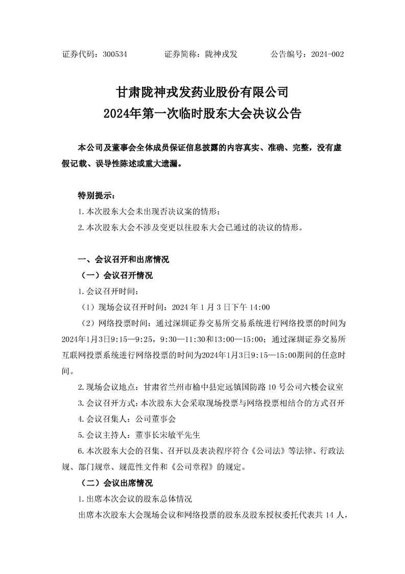 2024年第一次临时股东大会决议公告