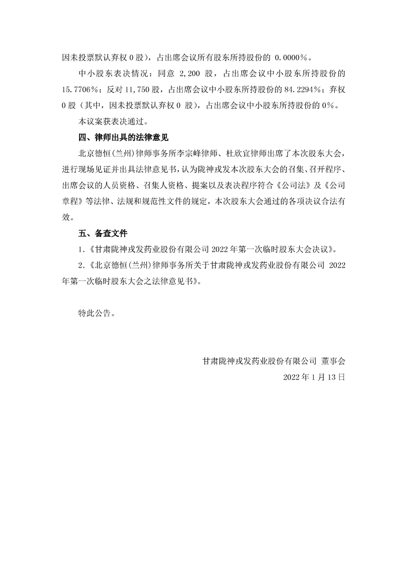 2022年第一次临时股东大会决议公告