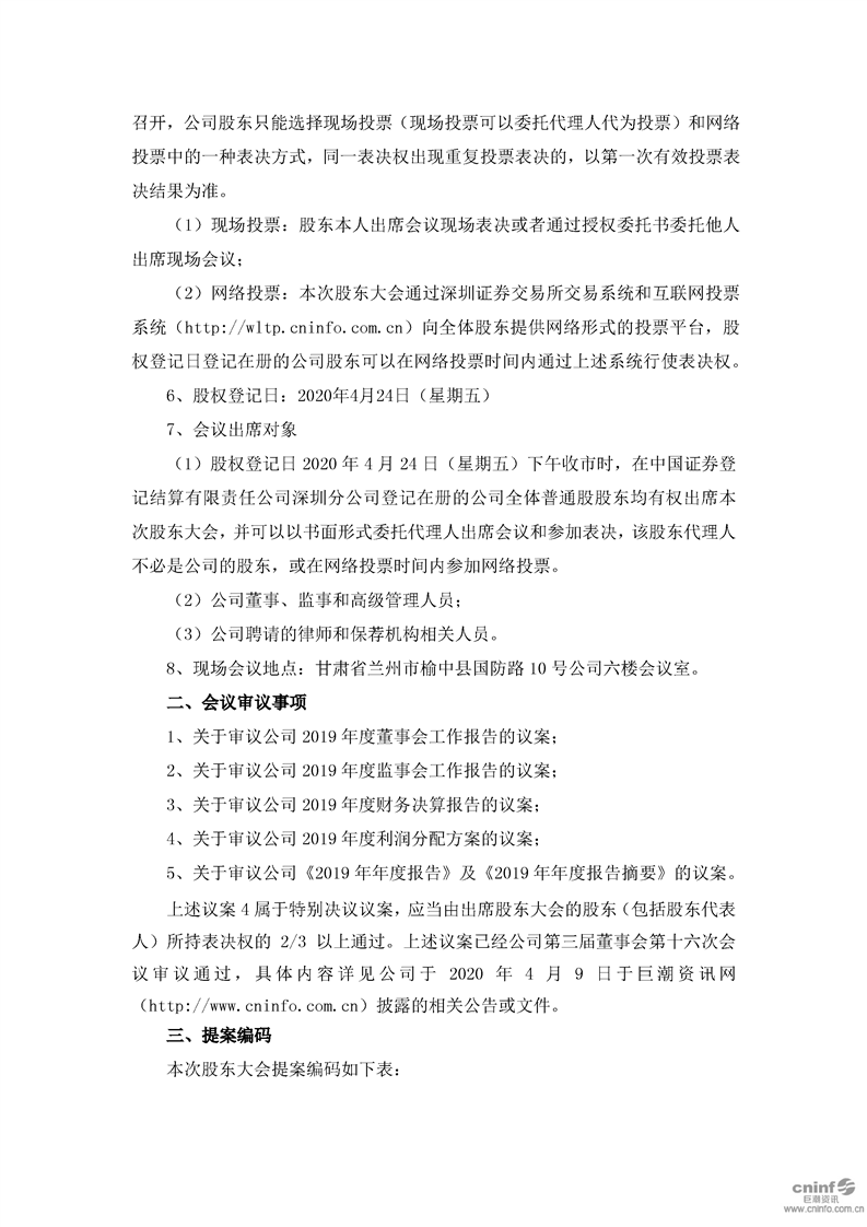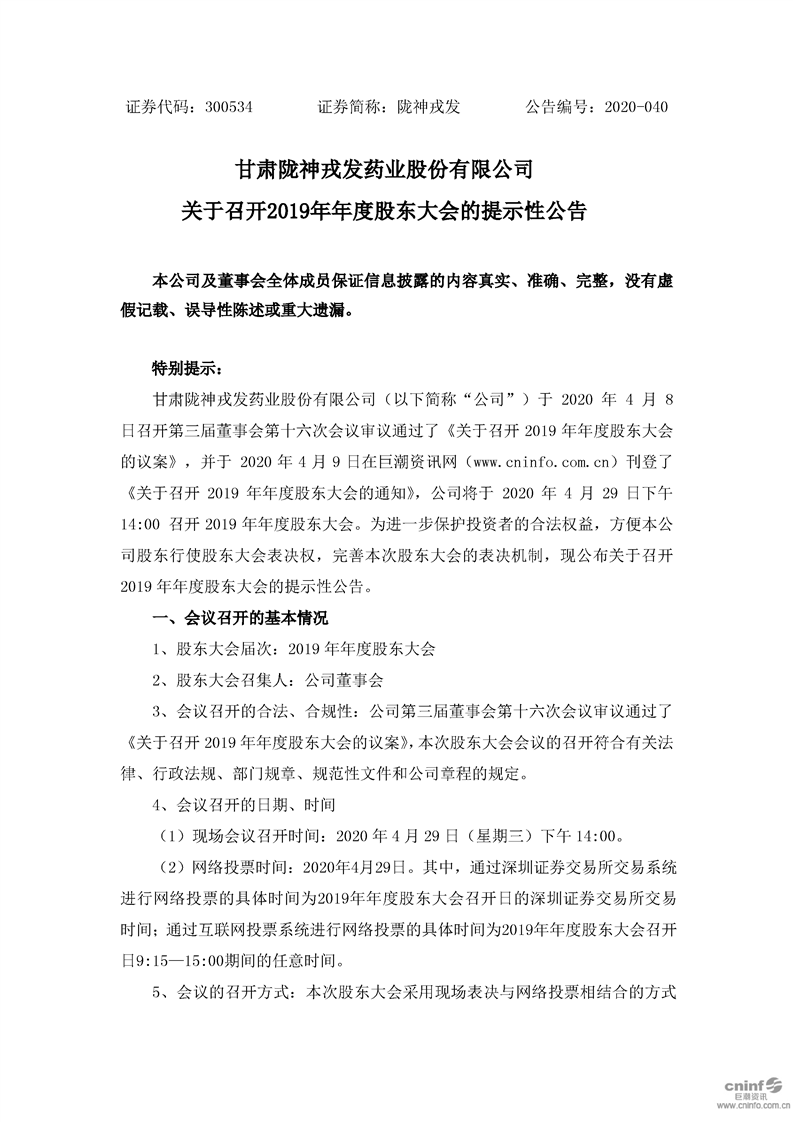 关于召开2019年年度股东大会的提示性公告