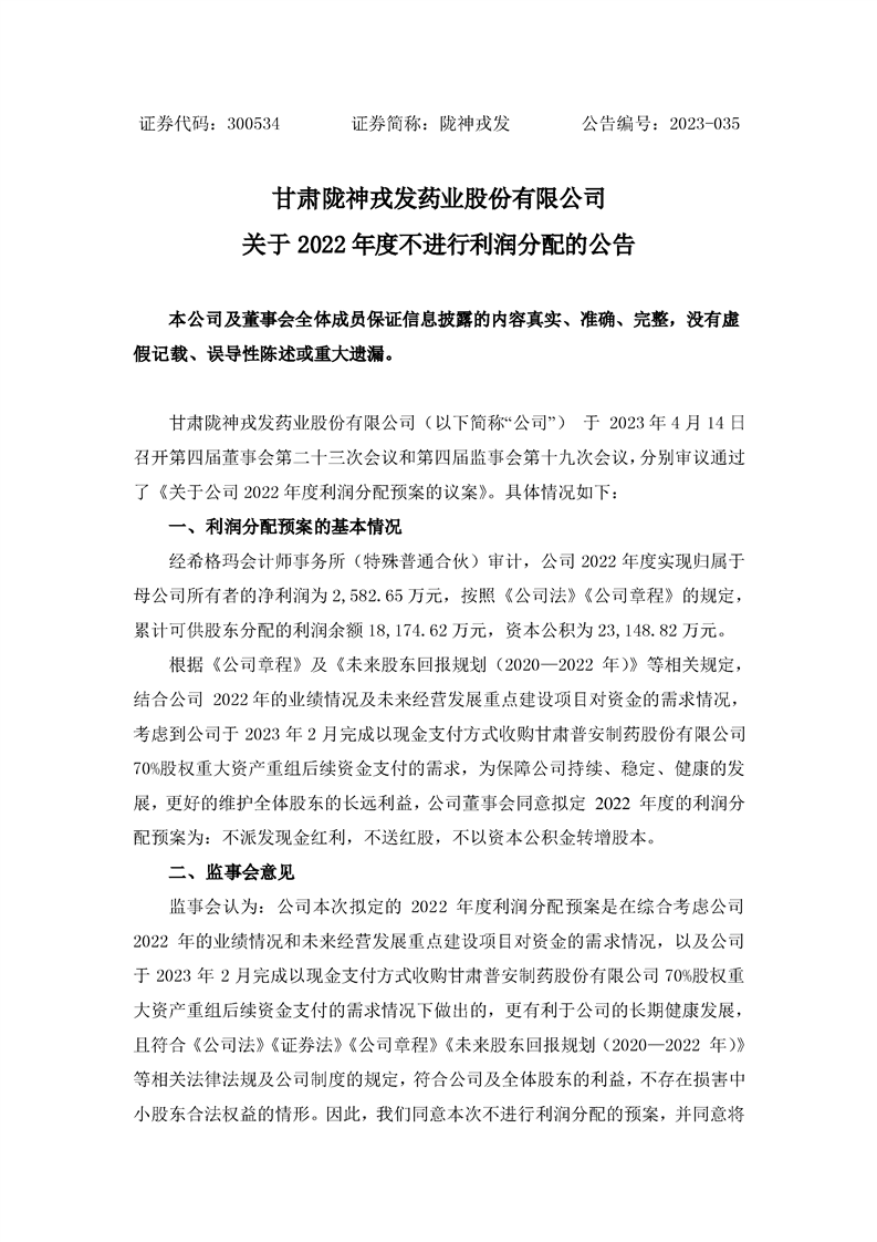 关于2022年度不进行利润分配的公告