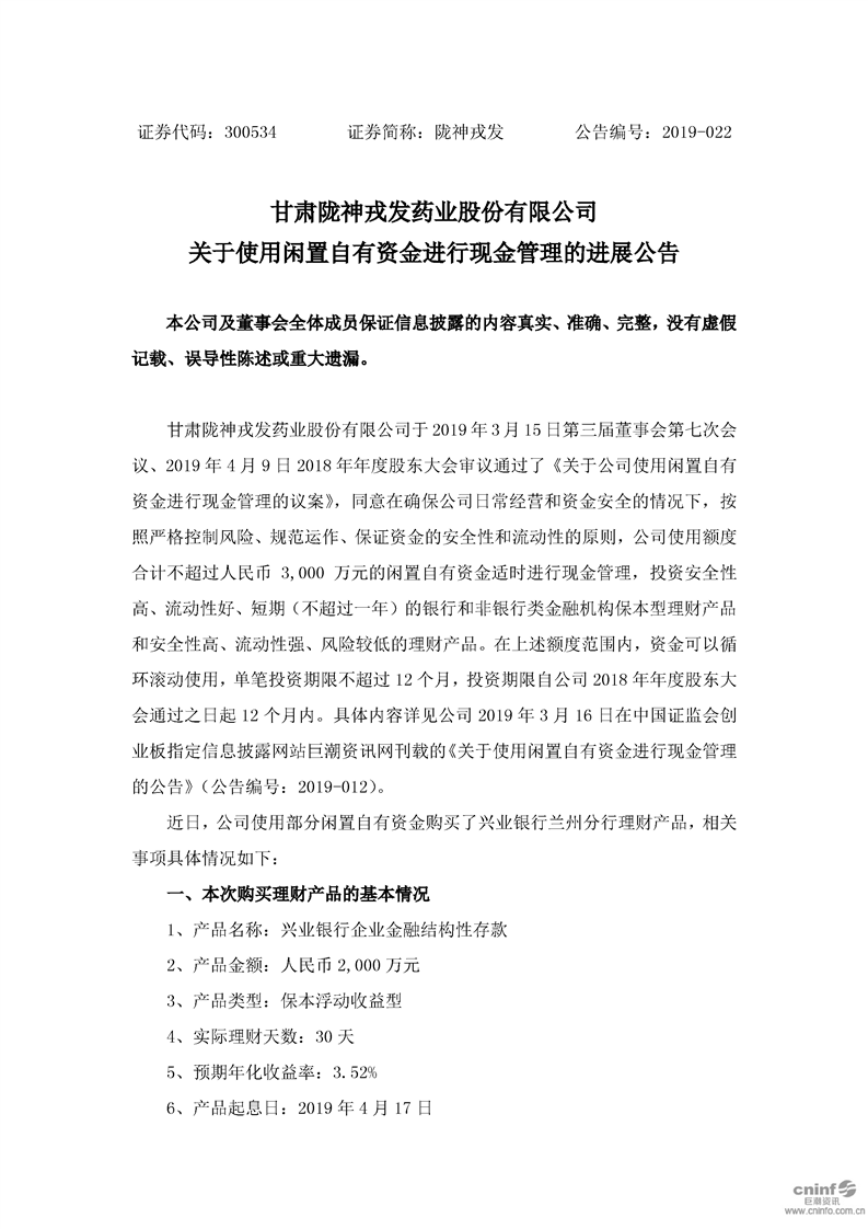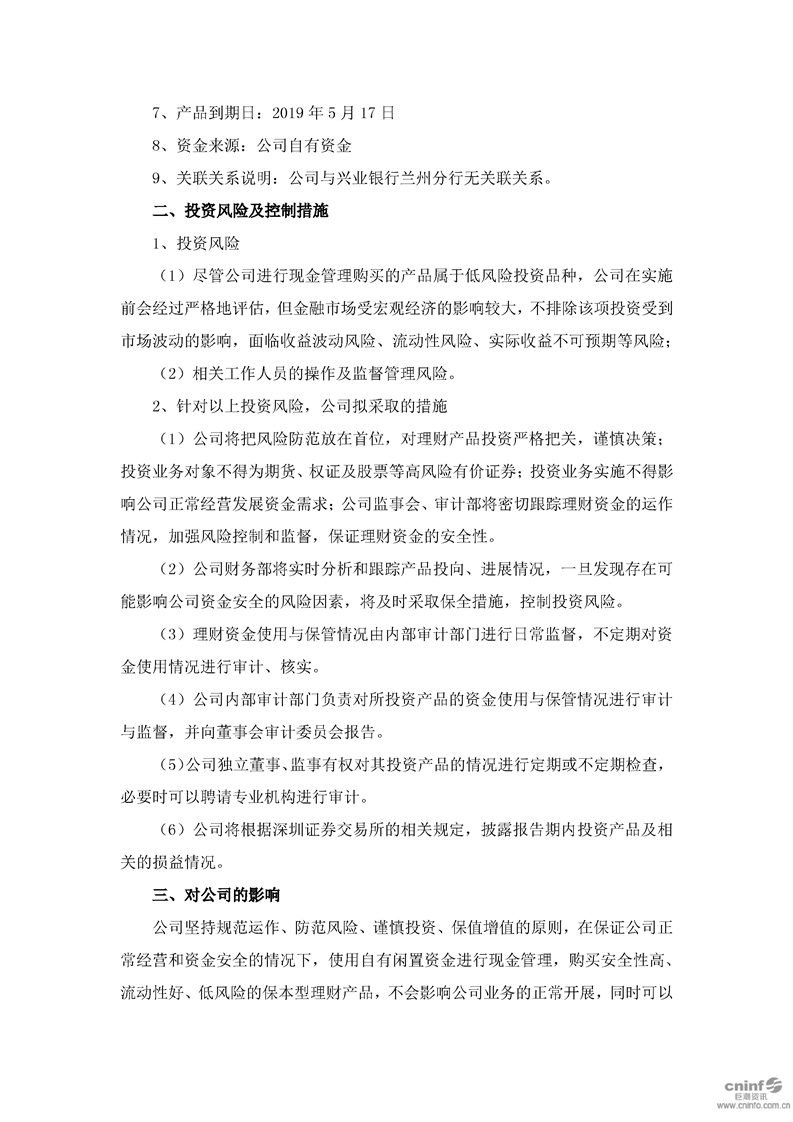 关于使用闲置自有资金进行现金管理的进展公告