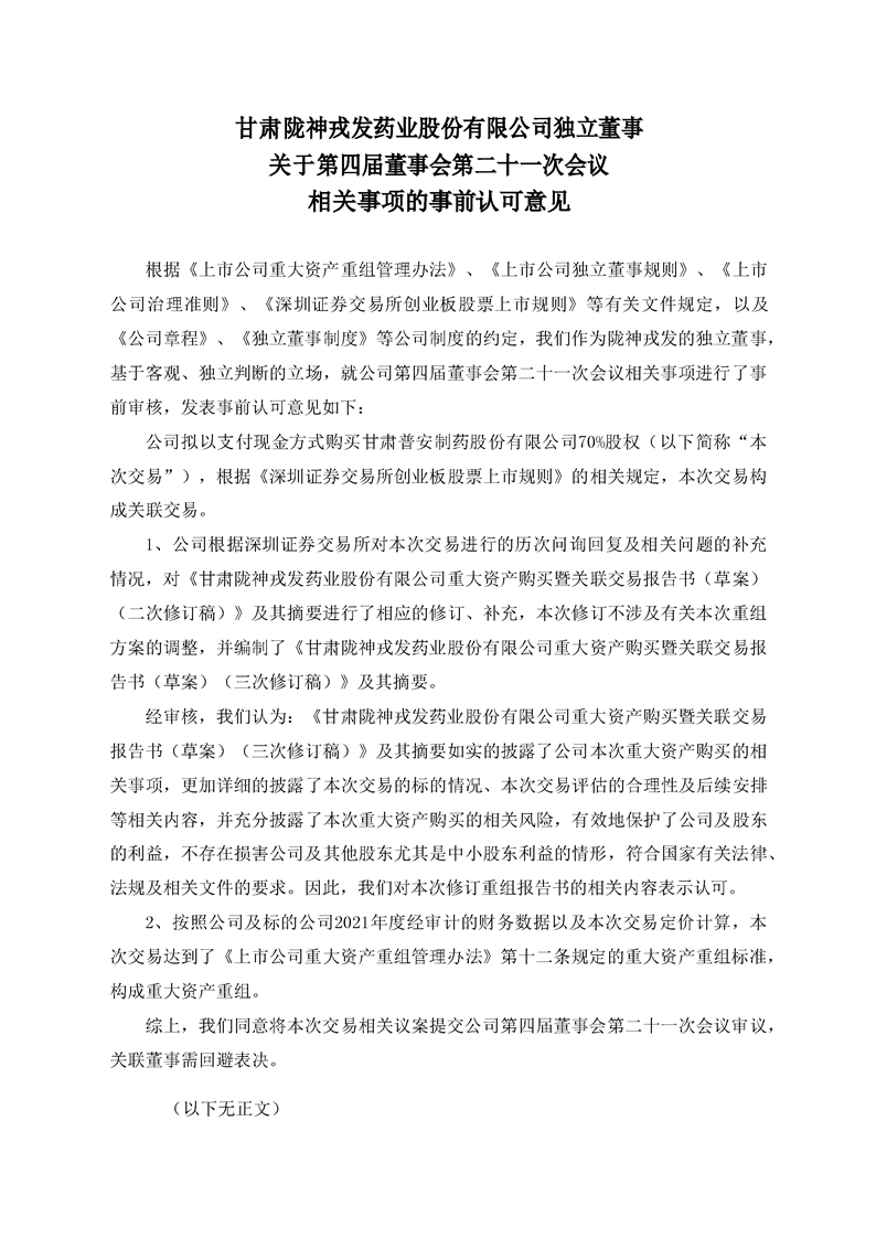 独立董事关于第四届董事会第二十一次会议相关事项的事前认可的意见