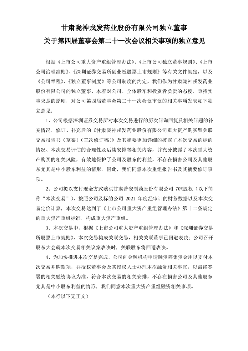 独立董事关于第四届董事会第二十一次会议相关事项的独立意见