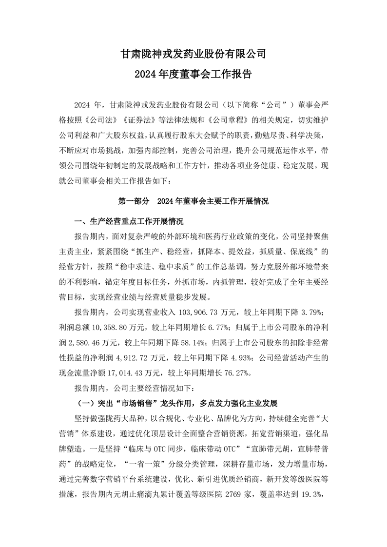 2024年度董事会工作报告