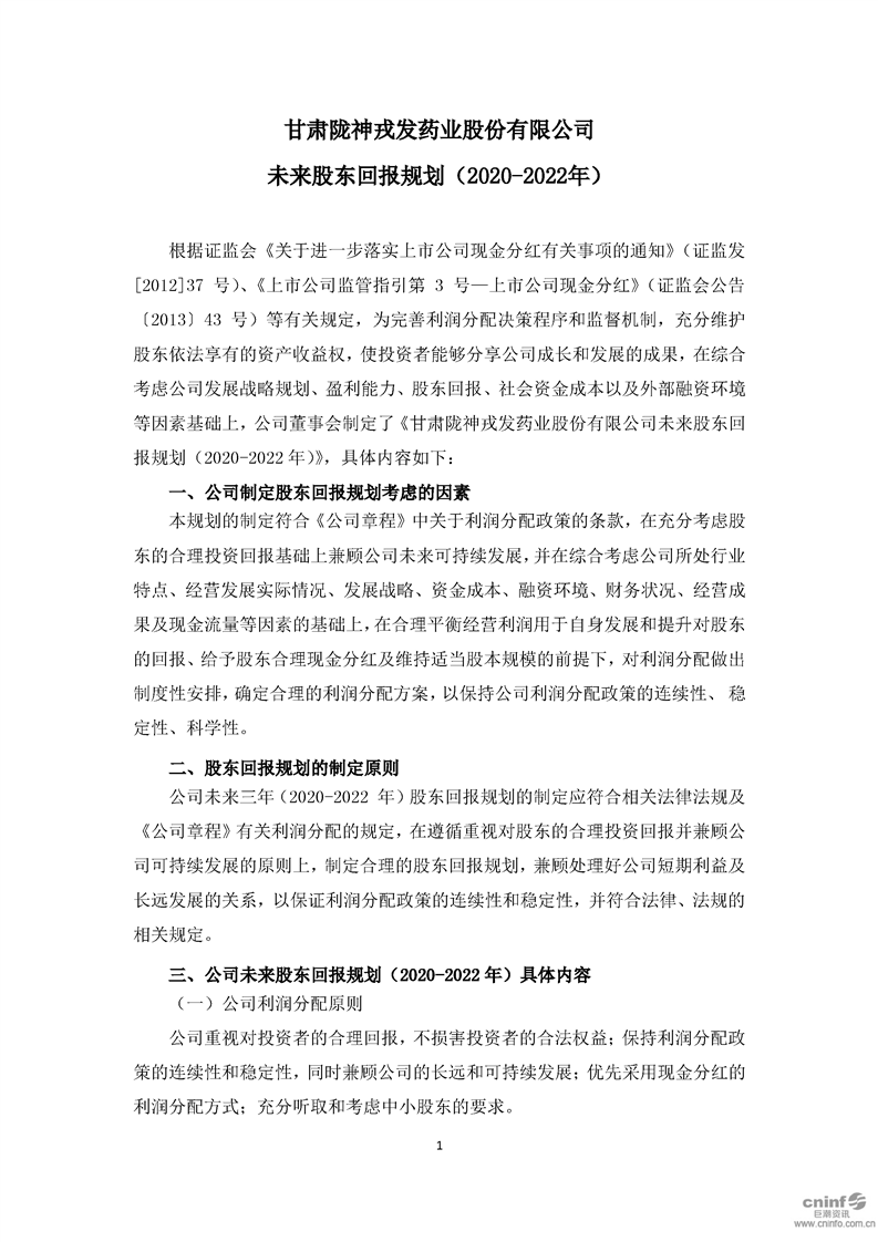 未来股东回报规划(2020-2022年)