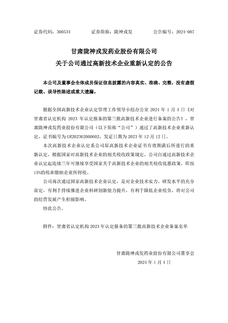 关于公司通过高新技术企业重新认定的公告