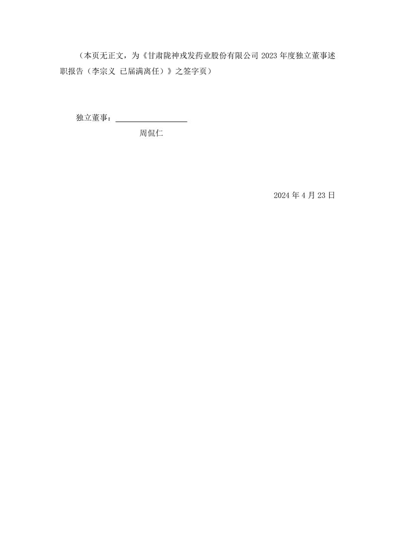 2023年度独立董事述职报告(周侃仁 已届满离任)
