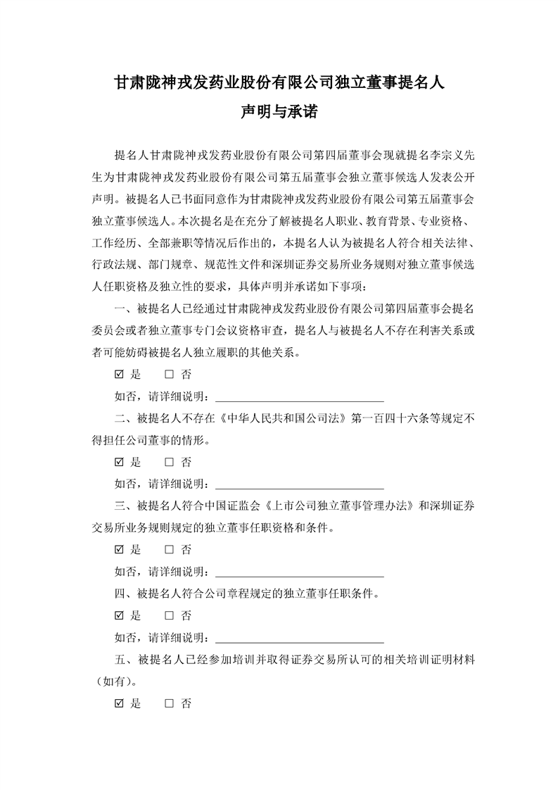 独立董事提名人声明与承诺(李宗义)