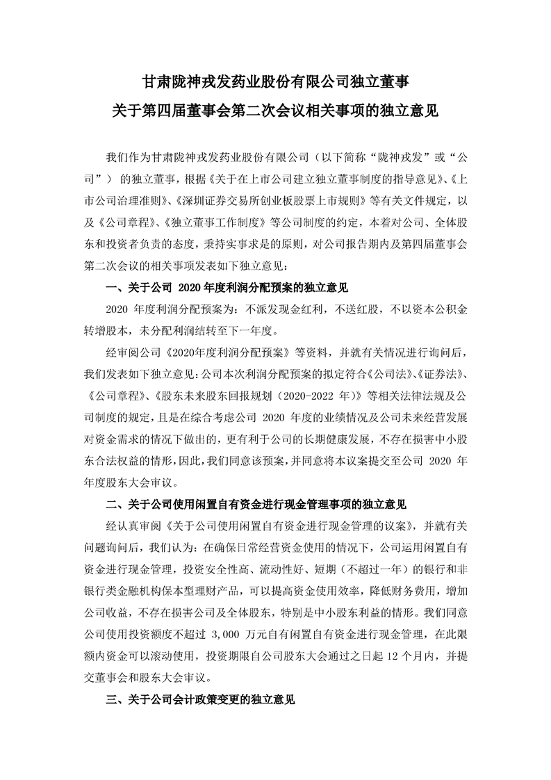 独立董事关于第四届董事会第二次会议相关事项的独立意见