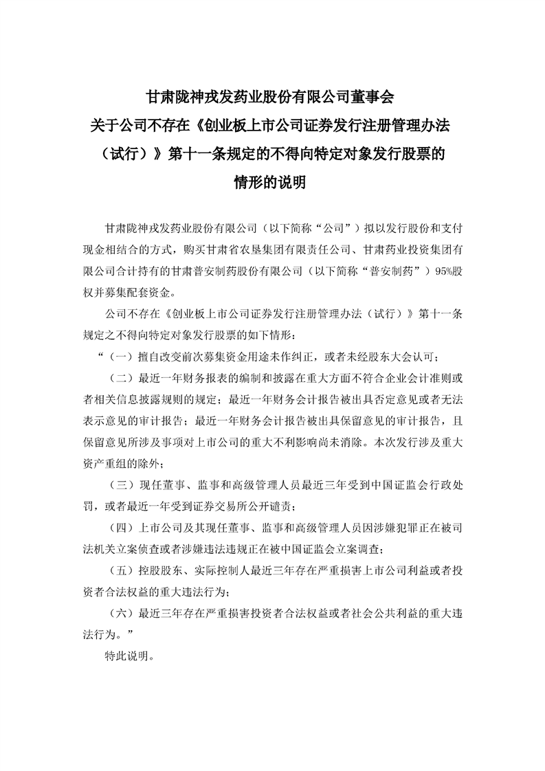 董事会关于公司不存在《创业板上市公司证券发行注册管理办法(试行)》第十一条规定的不得向特定对象发行股票的情形的说明
