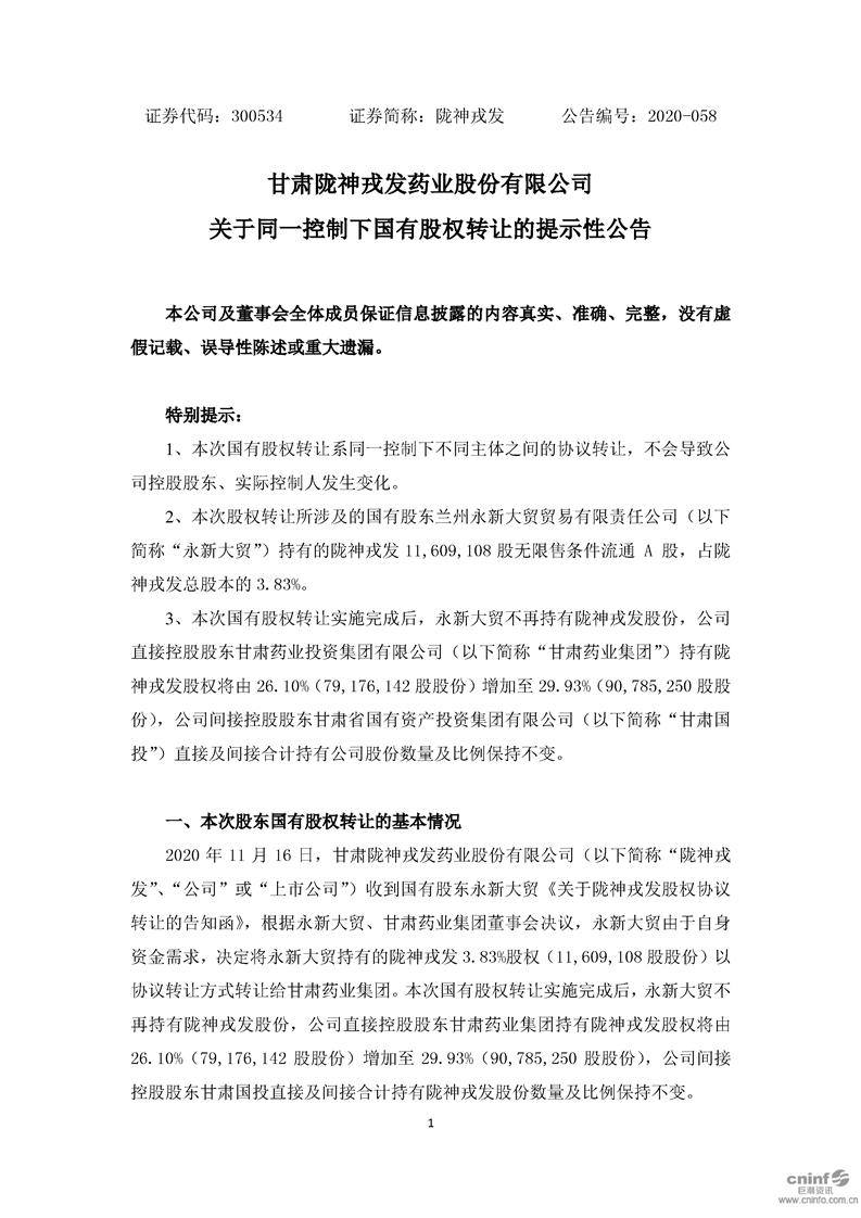 关于同一控制下国有股权转让的提示性公告