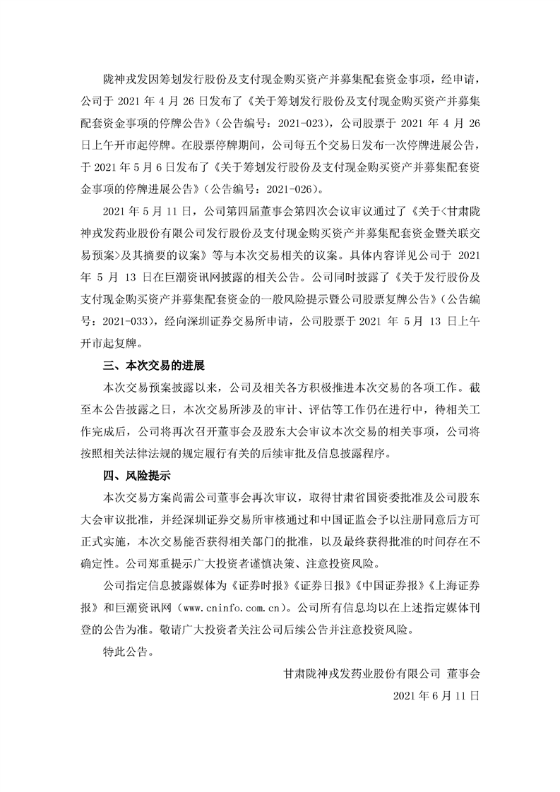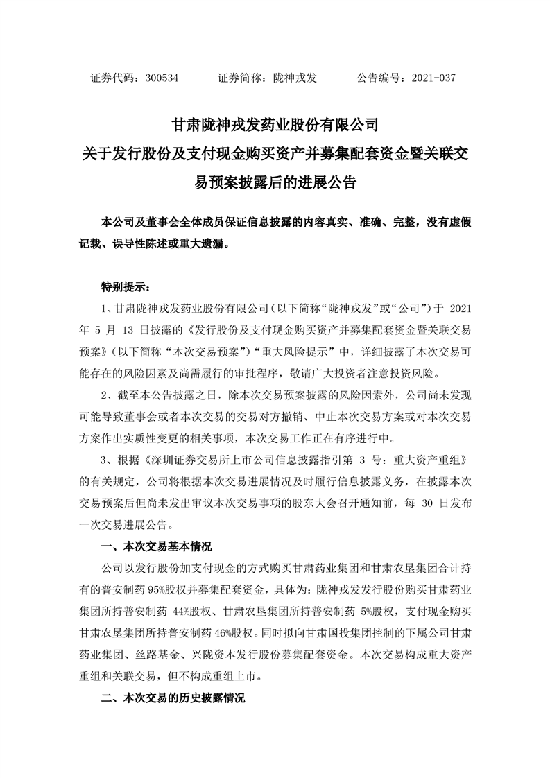 关于发行股份及支付现金购买资产并募集配套资金暨关联交易预案披露后的进展公告