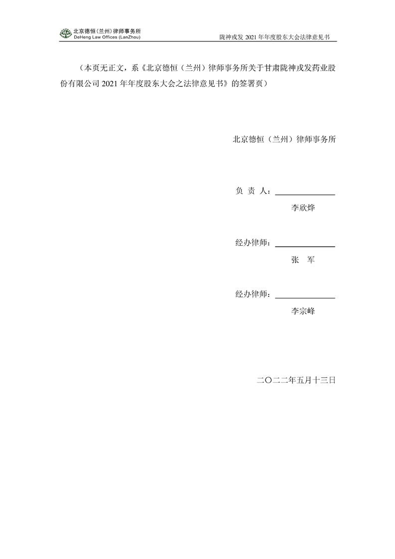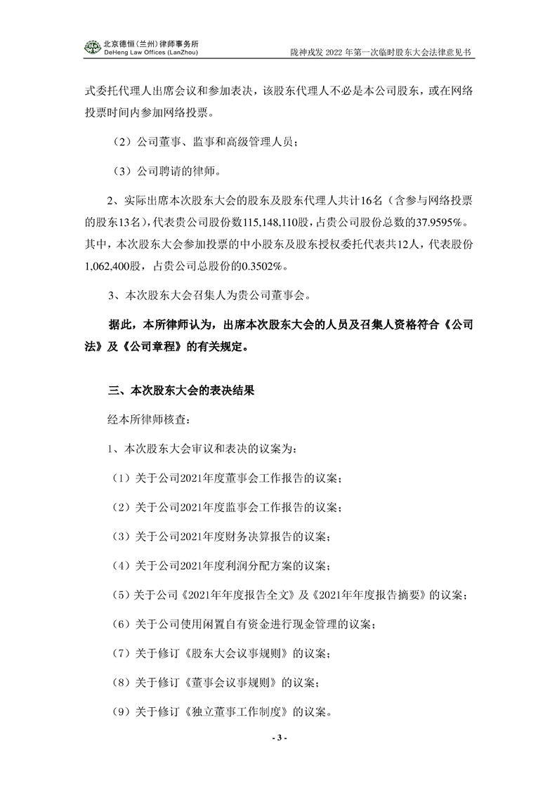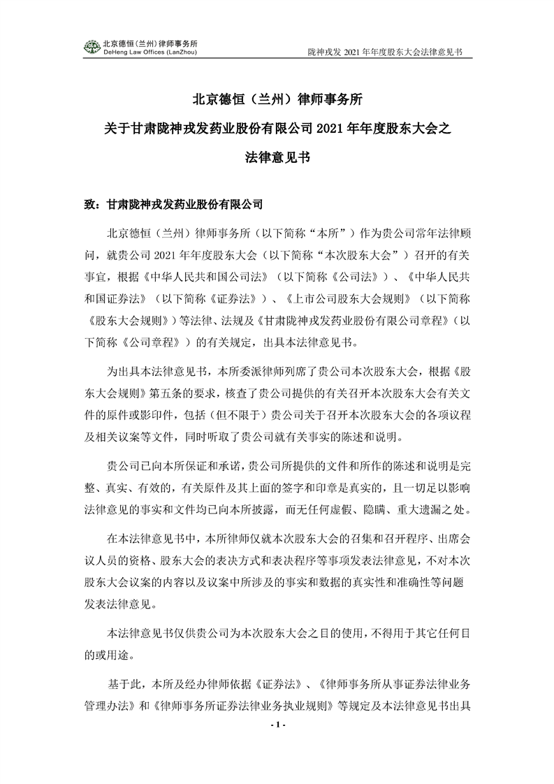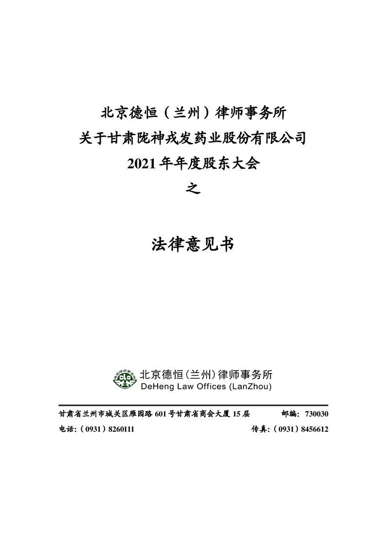 陇神戎发2021年年度股东大会法律意见书