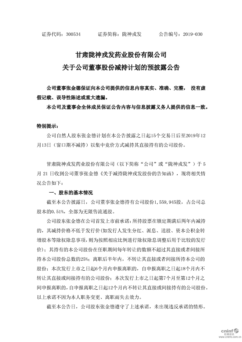 关于公司董事股份减持计划的预披露公告