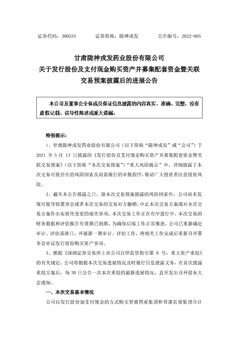 关于发行股份及支付现金购买资产并募集配套资金暨关联交易预案披露后的进展公告