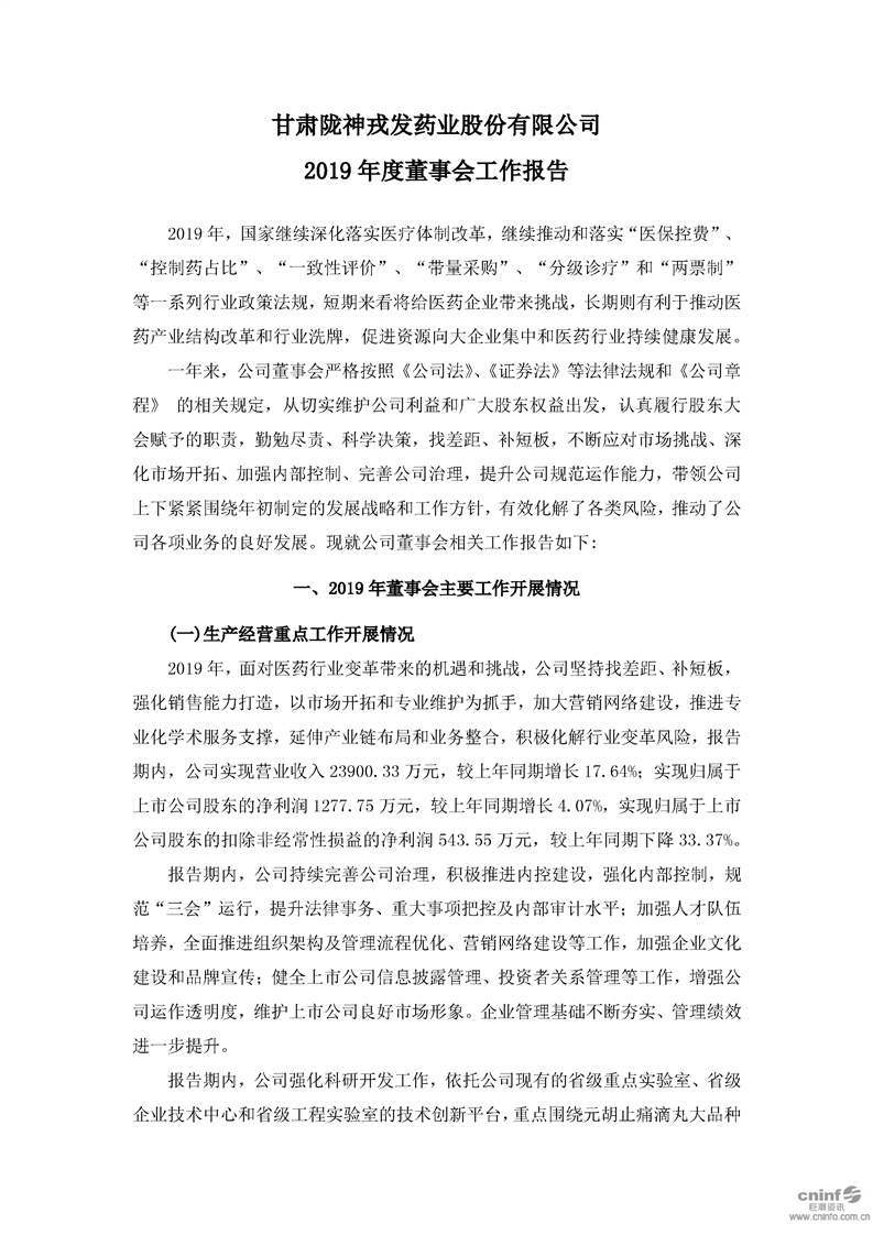 2019年度董事会工作报告