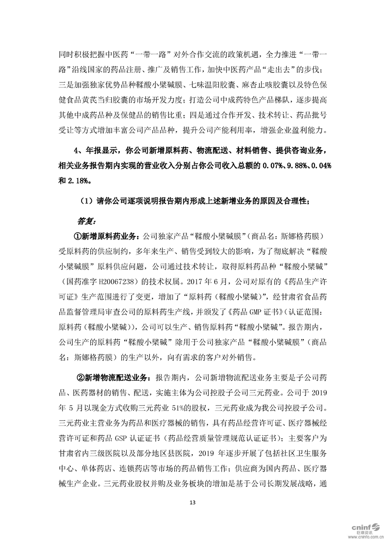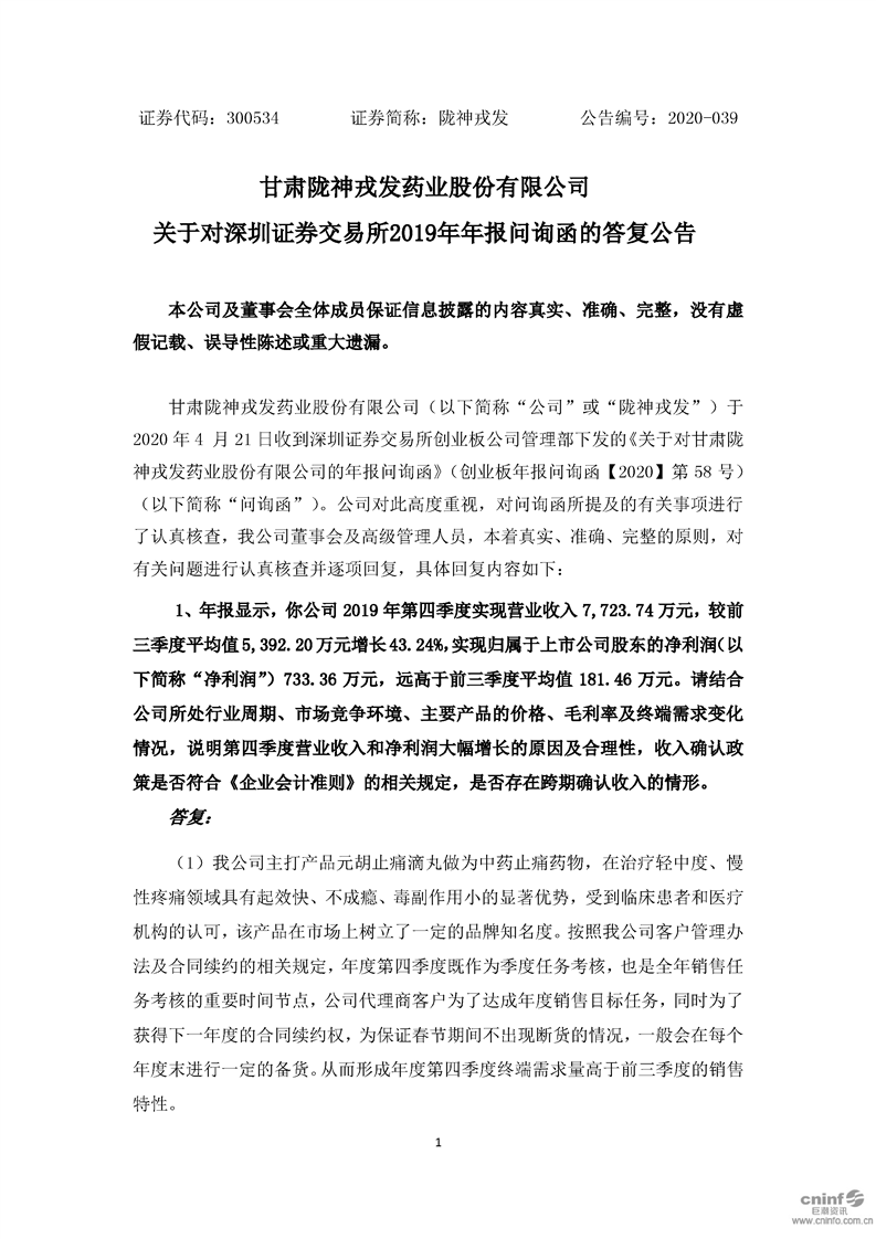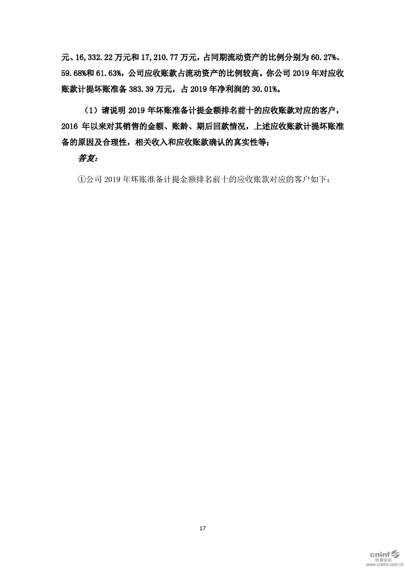 关于对深圳证券交易所2019年年报问询函的答复公告
