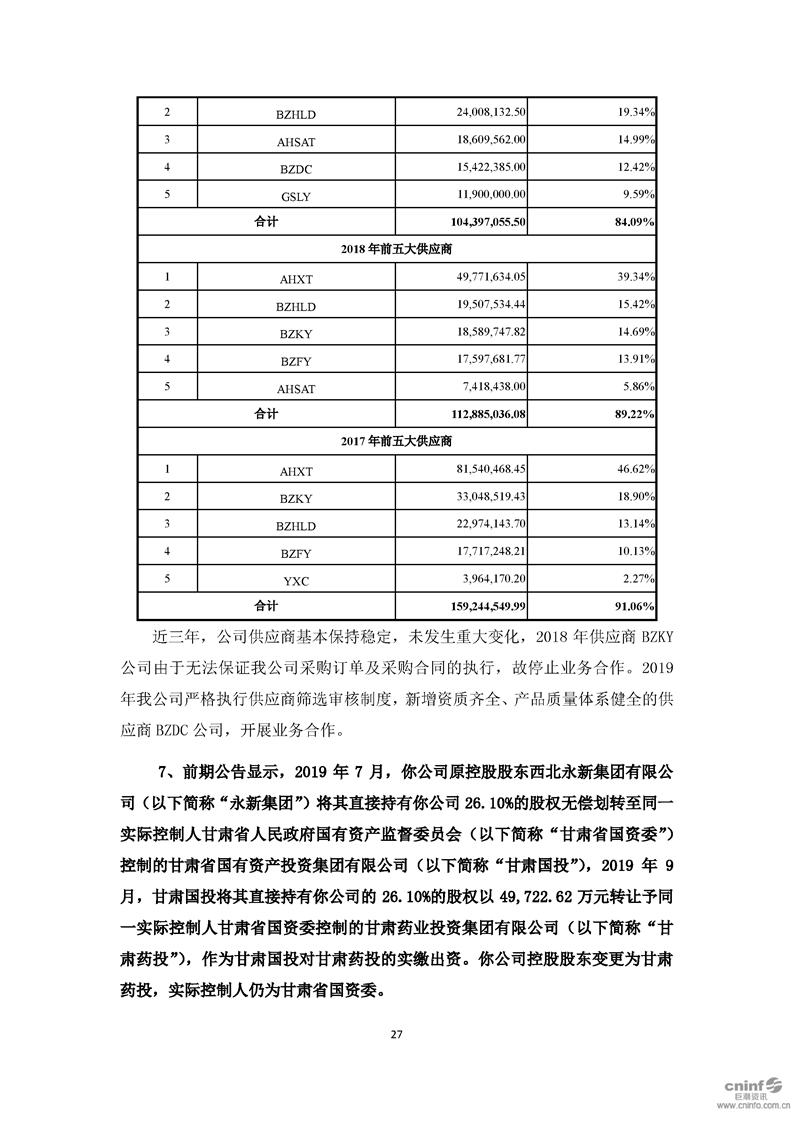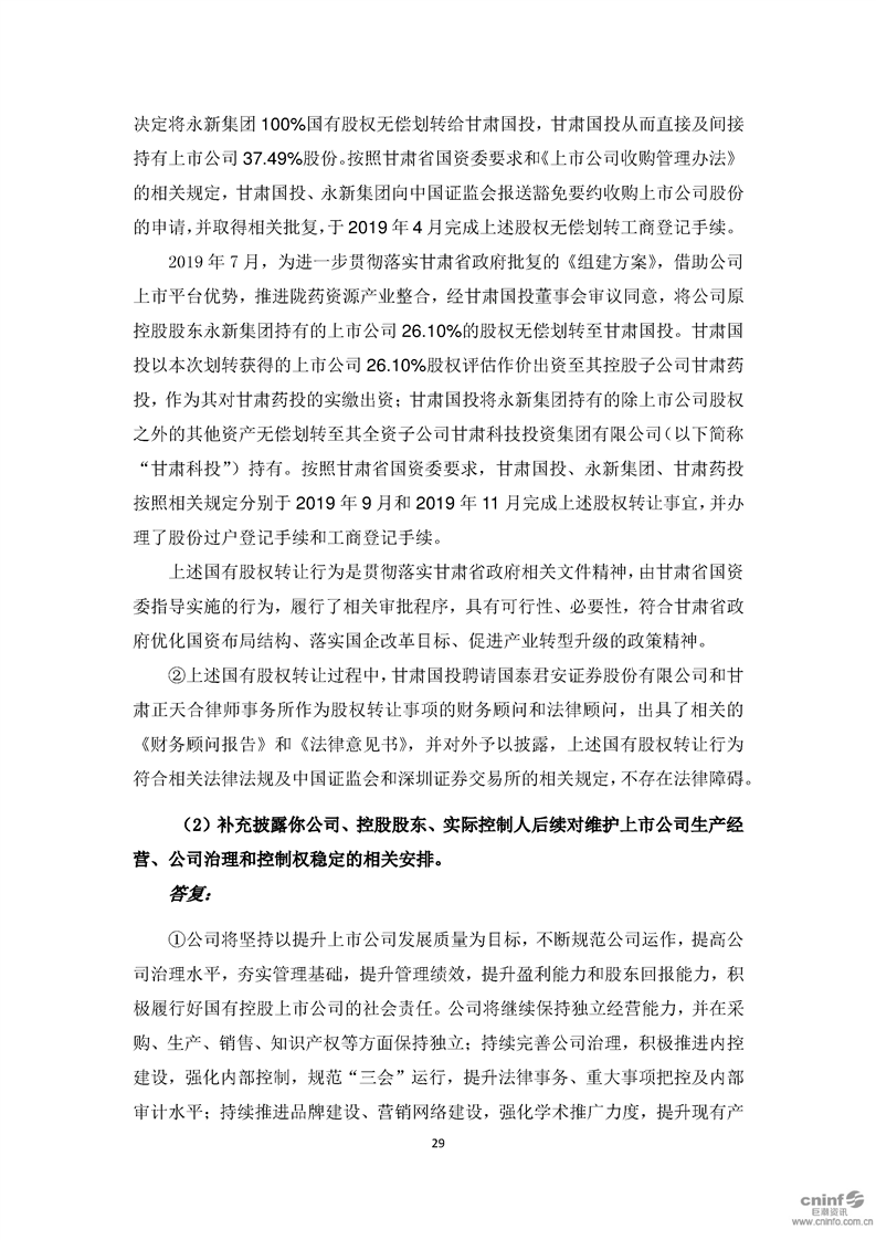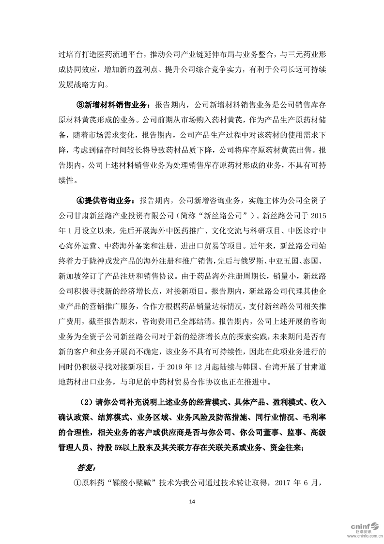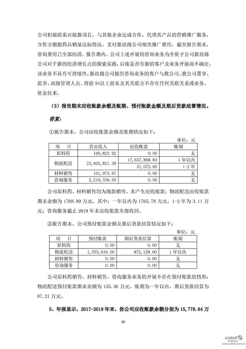 关于对深圳证券交易所2019年年报问询函的答复公告