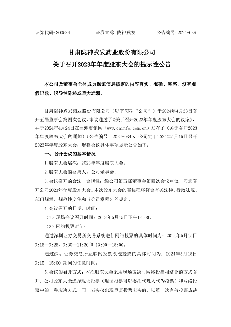 关于召开2023年年度股东大会的提示性公告