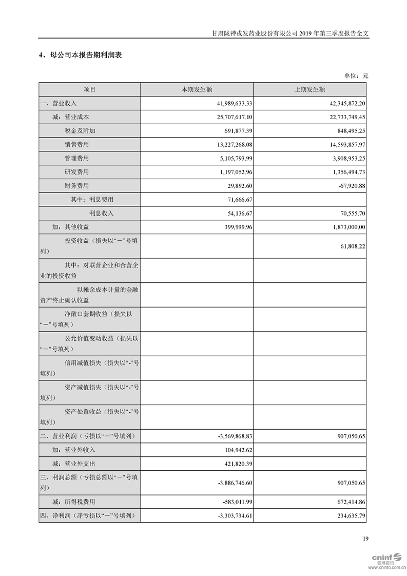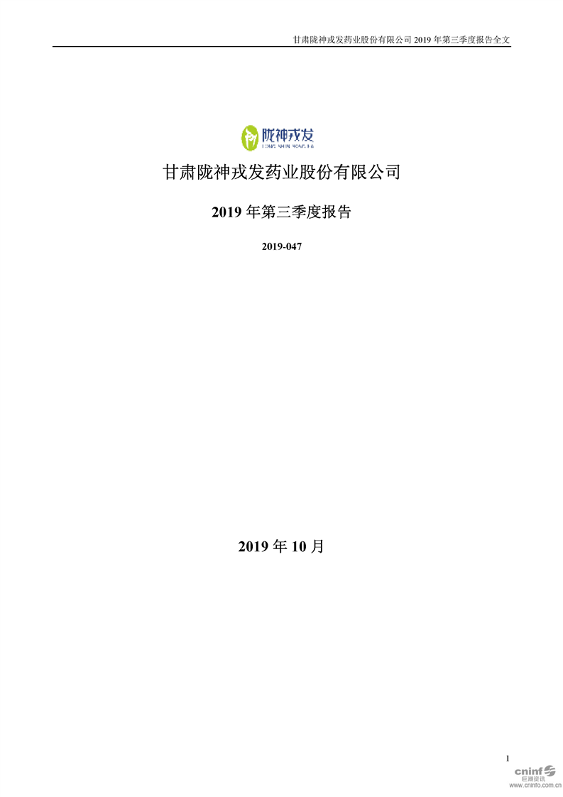 2019年第三季度报告全文