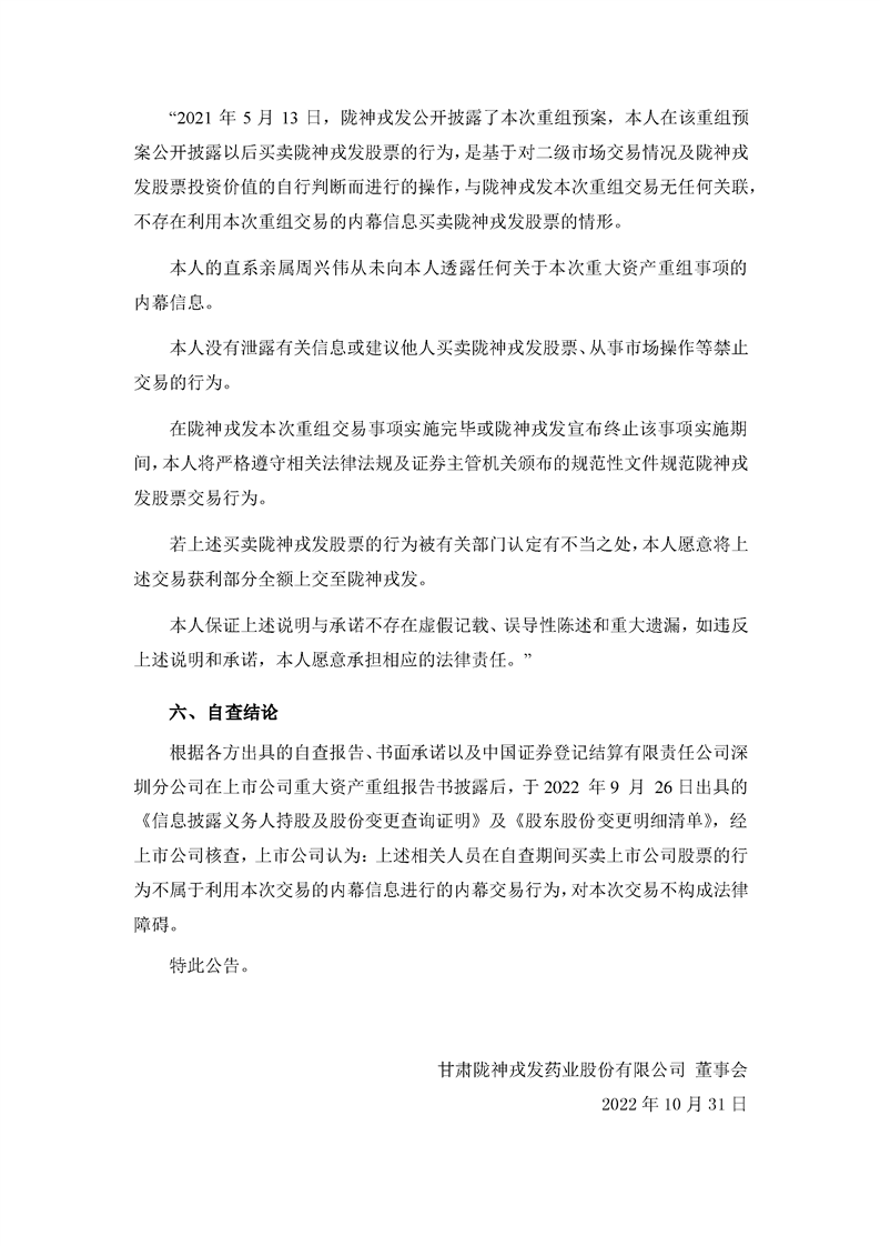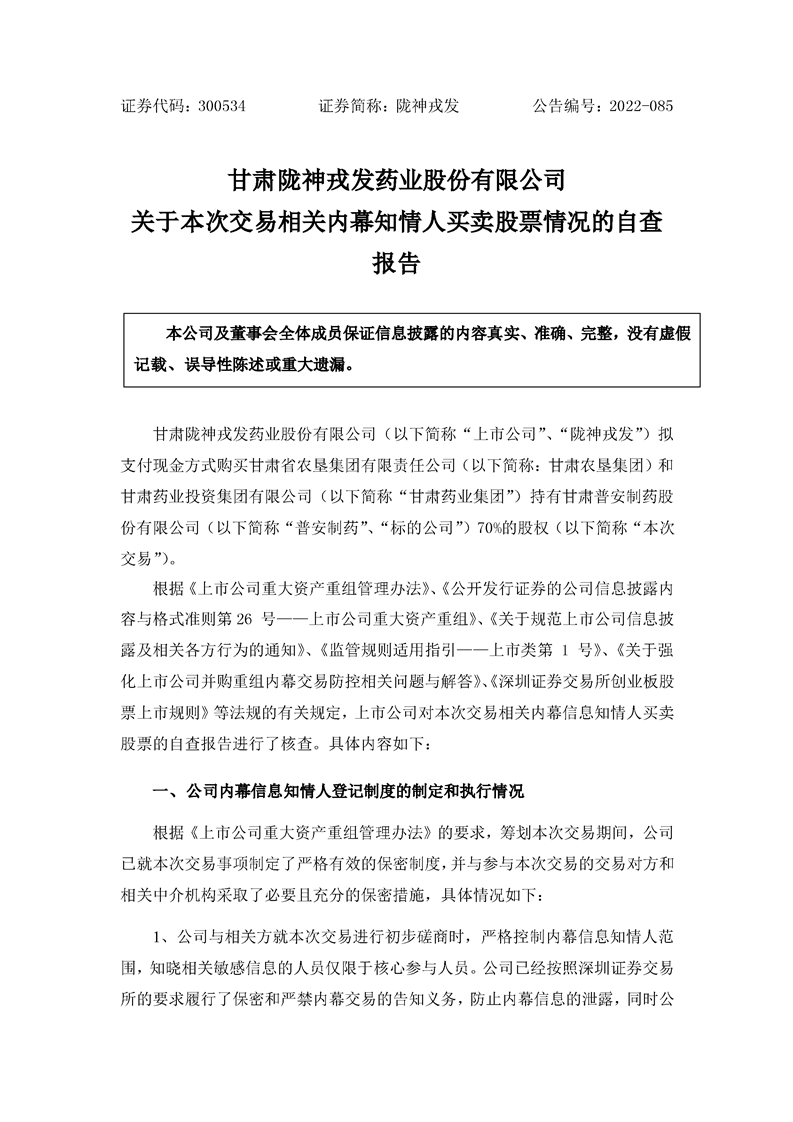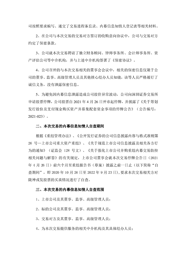 关于本次交易内幕信息知情人买卖股票情况的自查报告