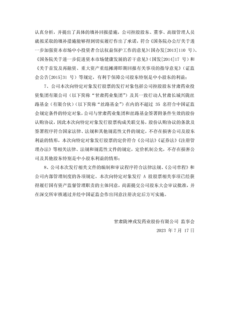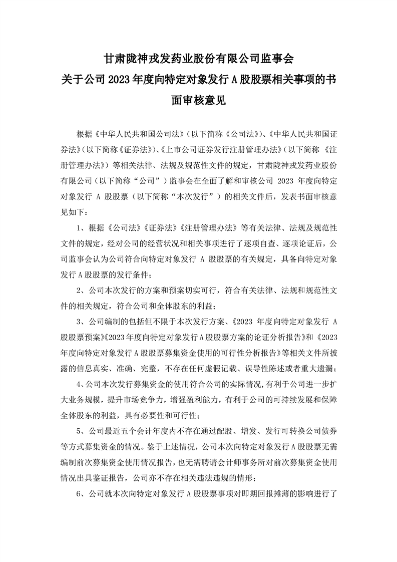 监事会关于公司2023年度向特定对象发行A股股票相关事项的书面审核意见