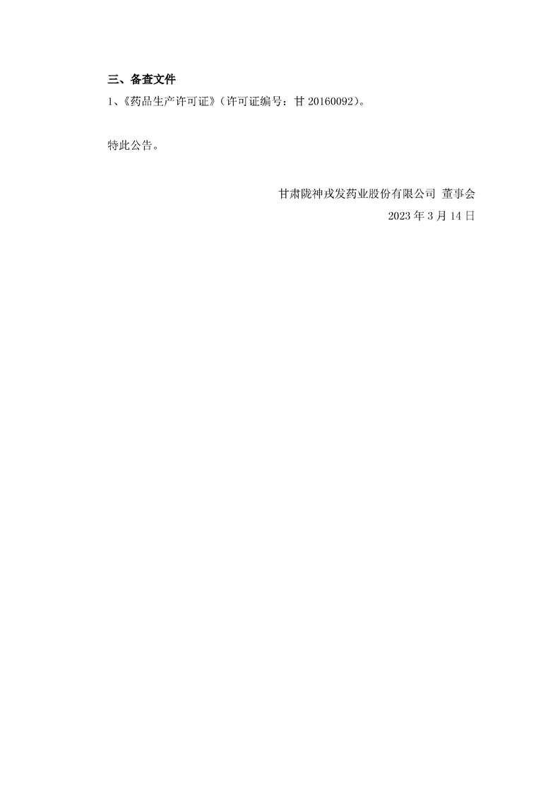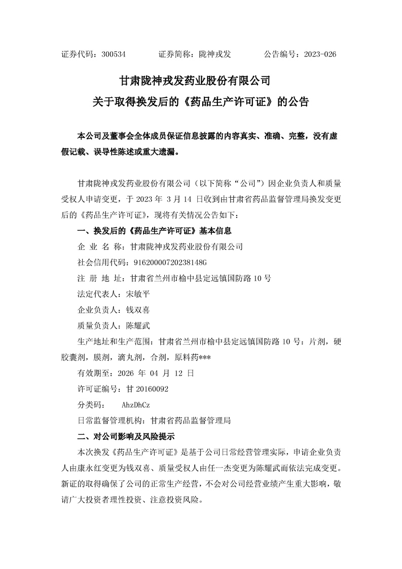 关于取得换发后的《药品生产许可证》的公告