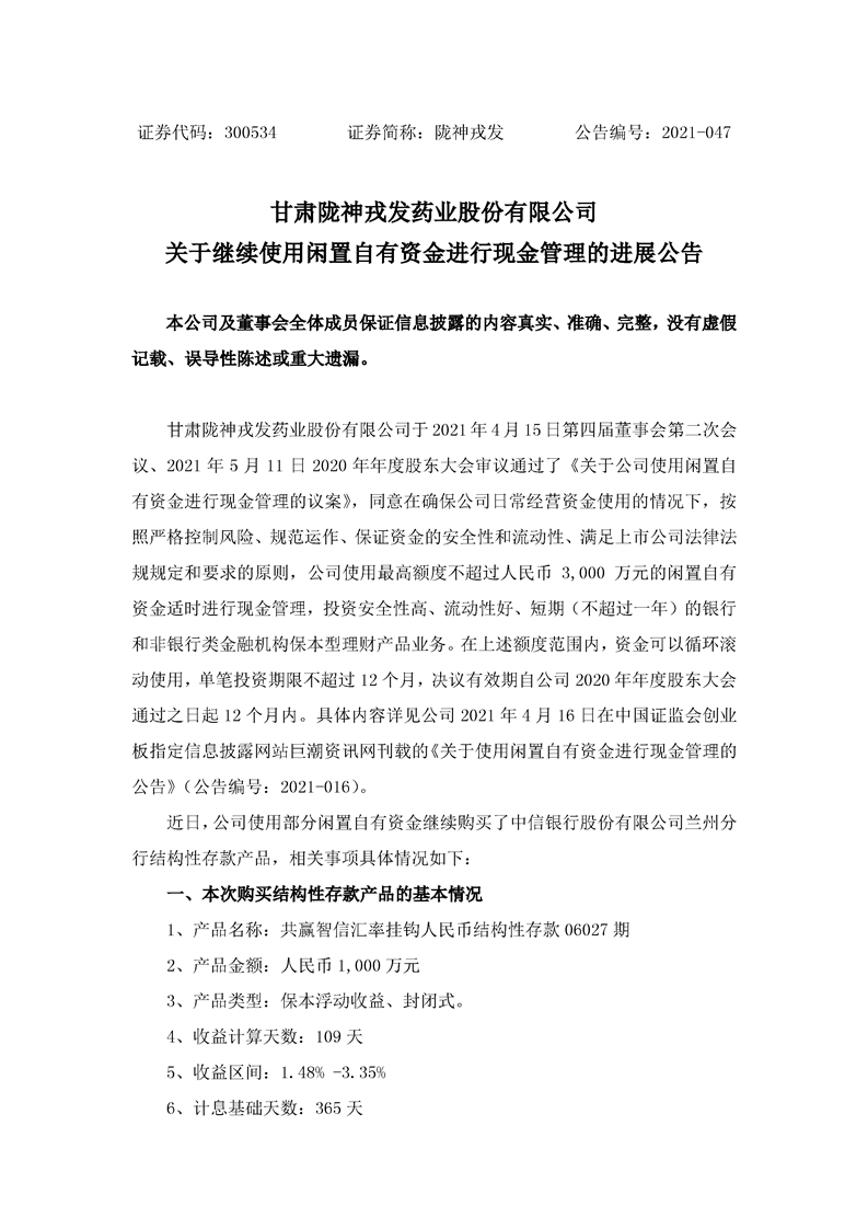 关于继续使用闲置自有资金进行现金管理的进展公告
