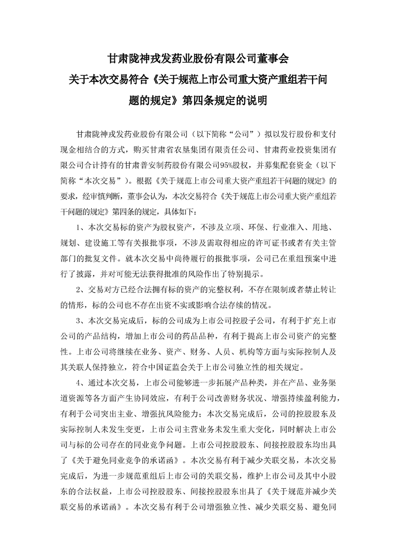 董事会关于本次交易符合《关于规范上市公司重大资产重组组若干问题的规定》第四条规定的说明