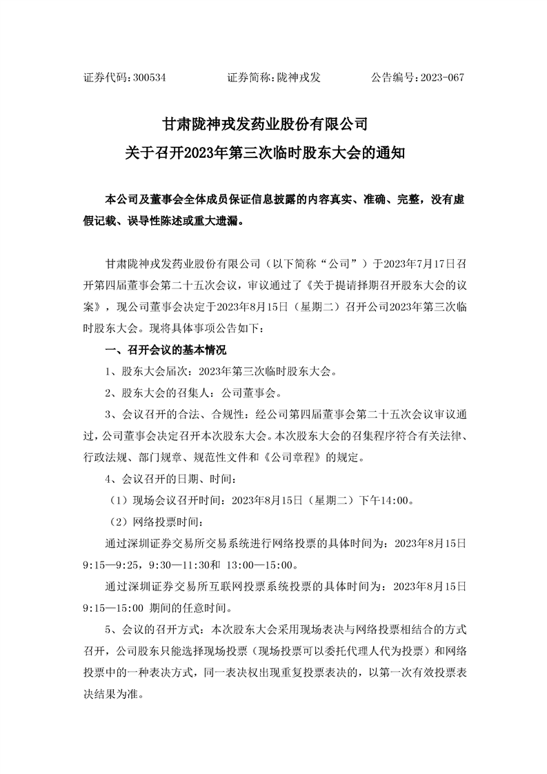 关于召开2023年第三次临时股东大会的通知
