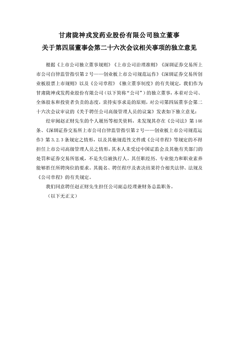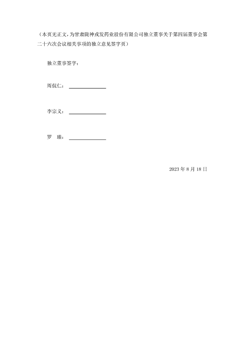独立董事关于第四届董事会第二十六次会议相关事项的独立意见