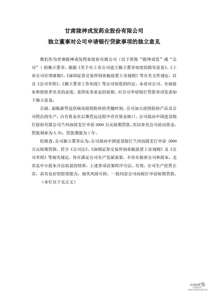 独立董事对公司申请银行贷款事项的独立意见