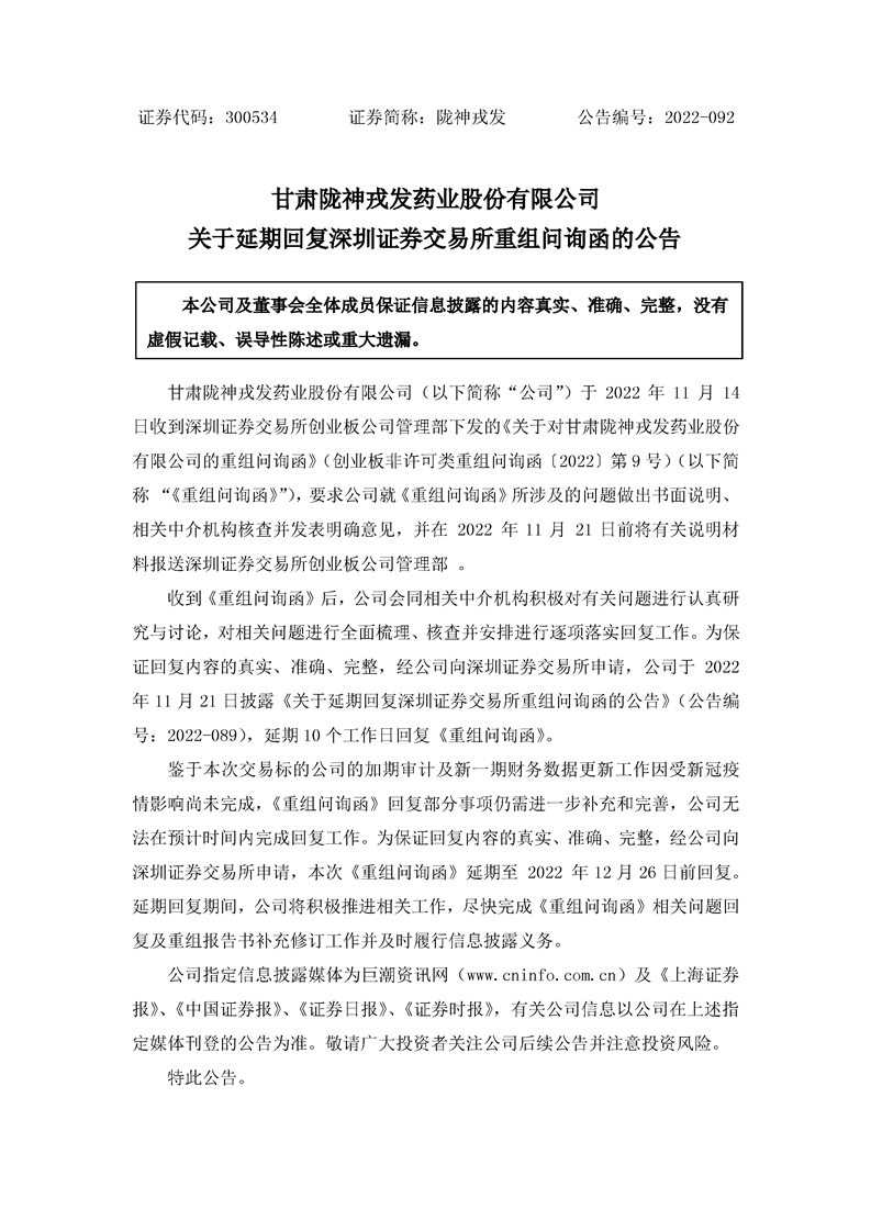 关于延期回复深圳证券交易所重组问询函的公告