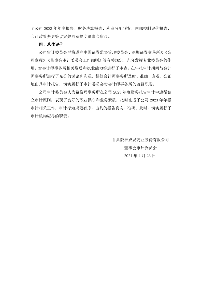 董事会审计委员会对会计师事务所2023年度履职情况评估及履行监督职责情况的报告
