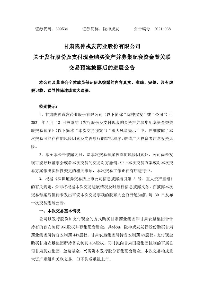 关于发行股份及支付现金购买资产并募集配套资金暨关联交易预案披露后的进展公告