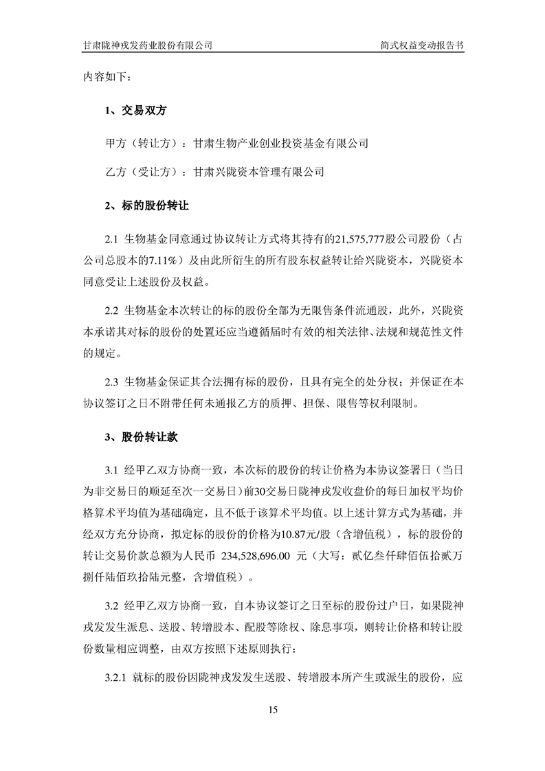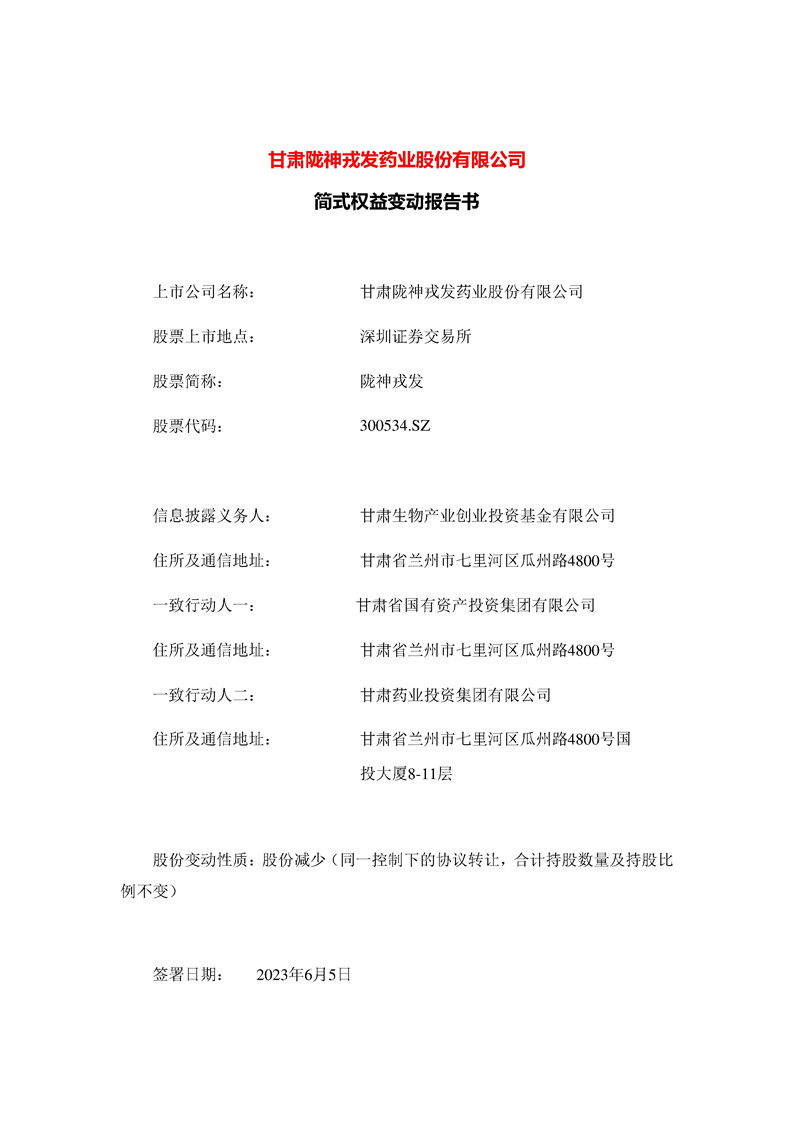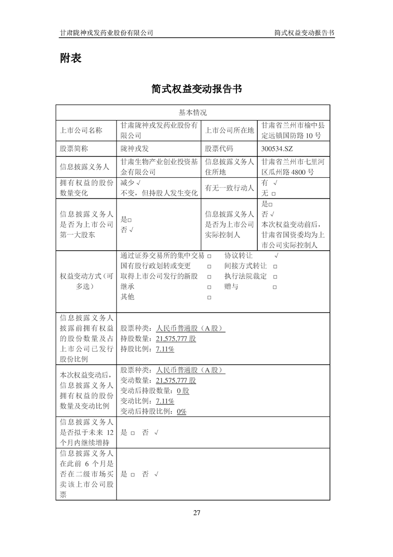 简式权益变动报告书(生物基金)