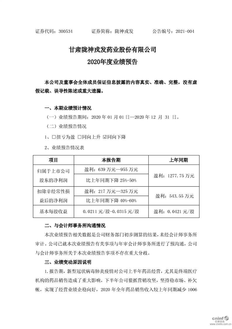 2020年度业绩预告