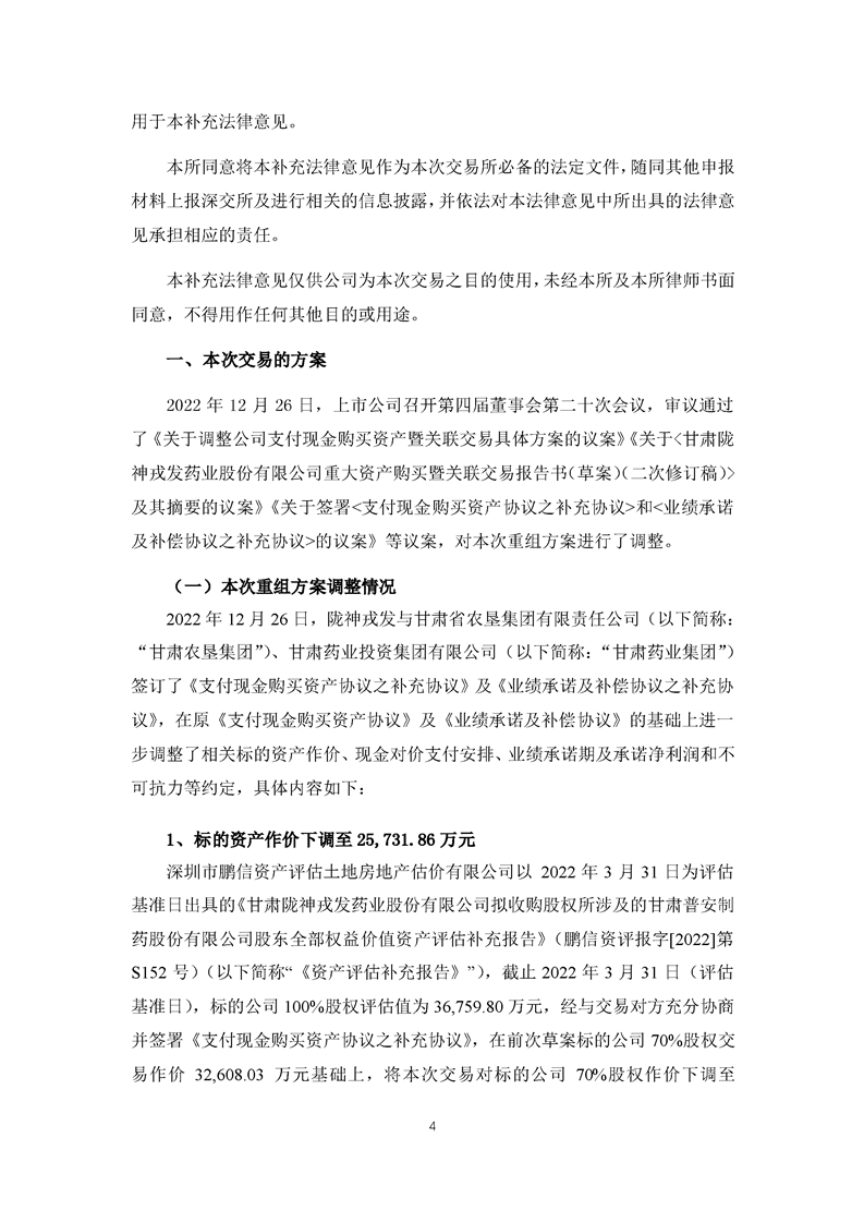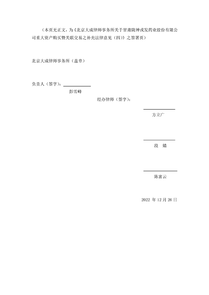 北京大成律师事务所关于甘肃陇神戎发药业股份有限公司重大资产购买暨关联交易补充法律意见(四)