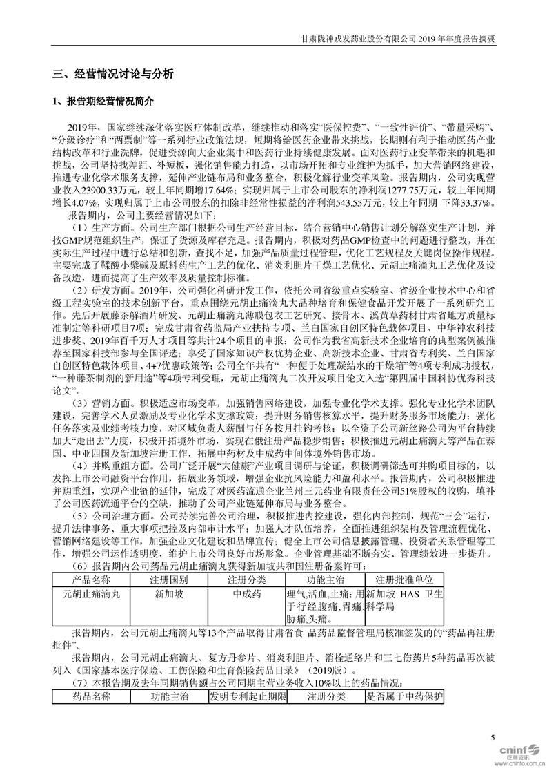 2019年年度报告摘要