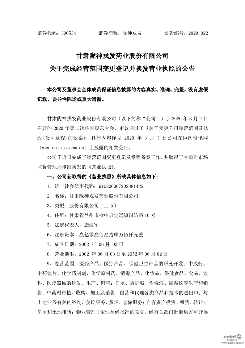 关于完成经营范围变更登记并换发营业执照的公告